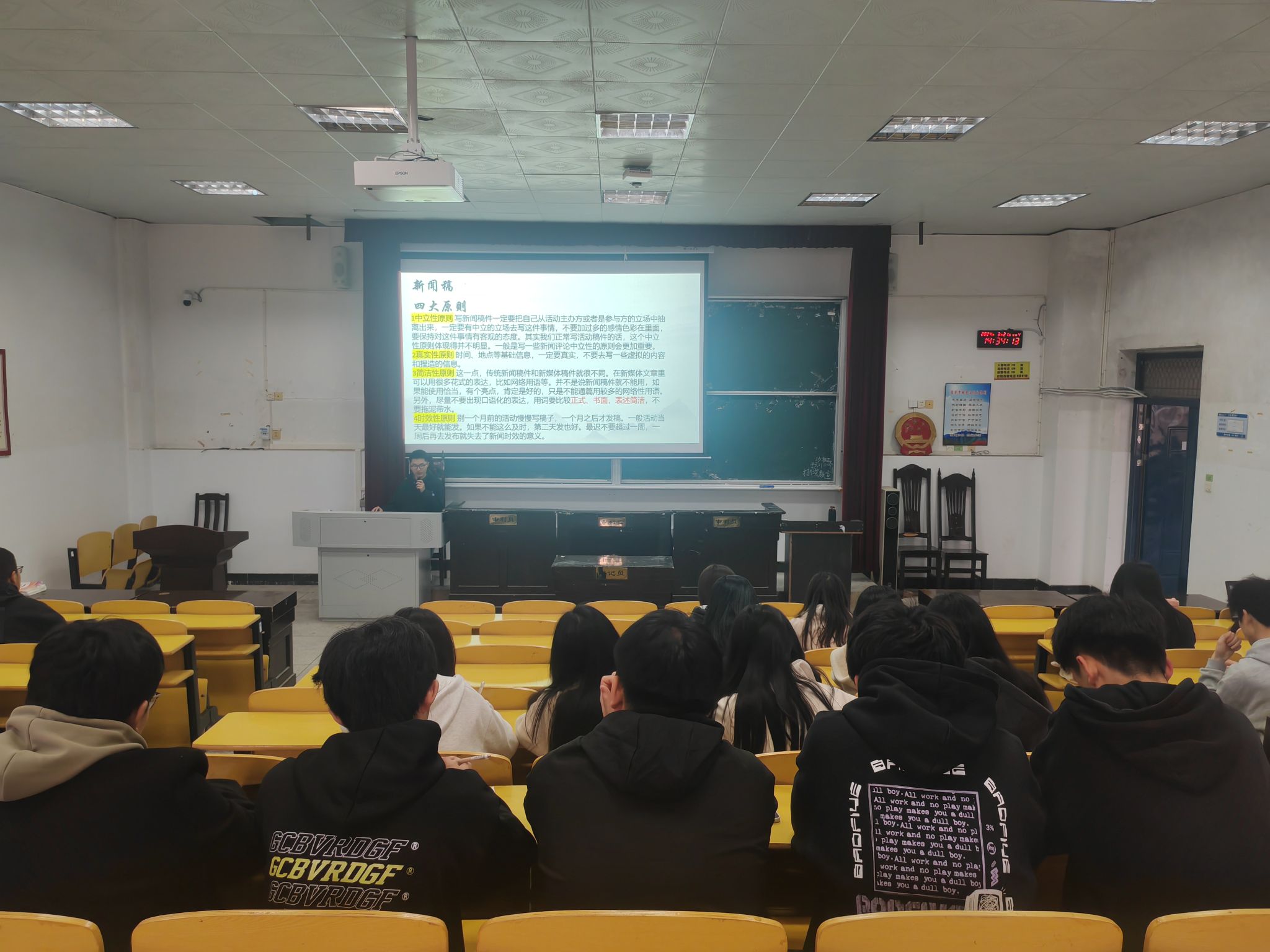讲座伊始,主讲人胡达豪向学生骨干们说明新闻宣传是沟通学生与校内外的重要桥梁,对于学生工作有很大帮助。讲座中,胡达豪从新闻稿写作基本格式与技巧、新闻稿写作易错点、写稿“一法”三个方面进行阐述,并就如何撰写新闻稿、如何进行有效排版、要避免哪些错误等内容结合自己的写作经验和实际案例进行了深入浅出的讲解,使学生骨干们对新闻写作和排版有了更全面、更深入的认识。学生骨干们表示会把所学知识运用到实际工作中,不断提高新闻宣传质量,为学院的学生工作贡献力量。