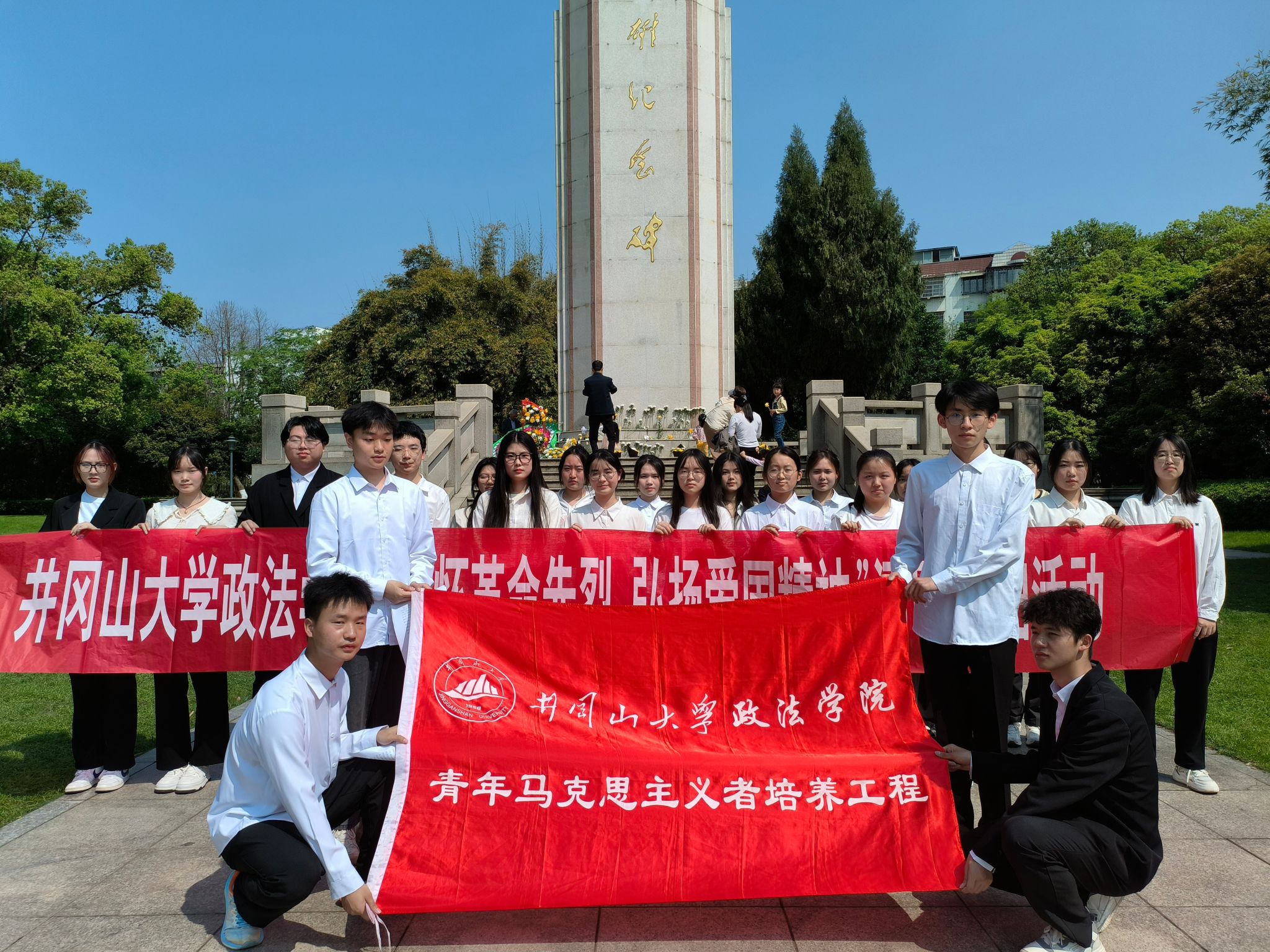 为祭奠革命烈士、缅怀革命先烈的丰功伟绩,增强同学们对国家和民族的历史责任感和使命感,弘扬革命精神,3月30日上午10时,政法学院于白鹭洲公园革命英雄纪念碑开展“缅怀革命先烈,弘扬爱国精神”清明祭扫活动。政法学院王尔琢班学员、政法学院青马班第十四期学员参与此次活动。