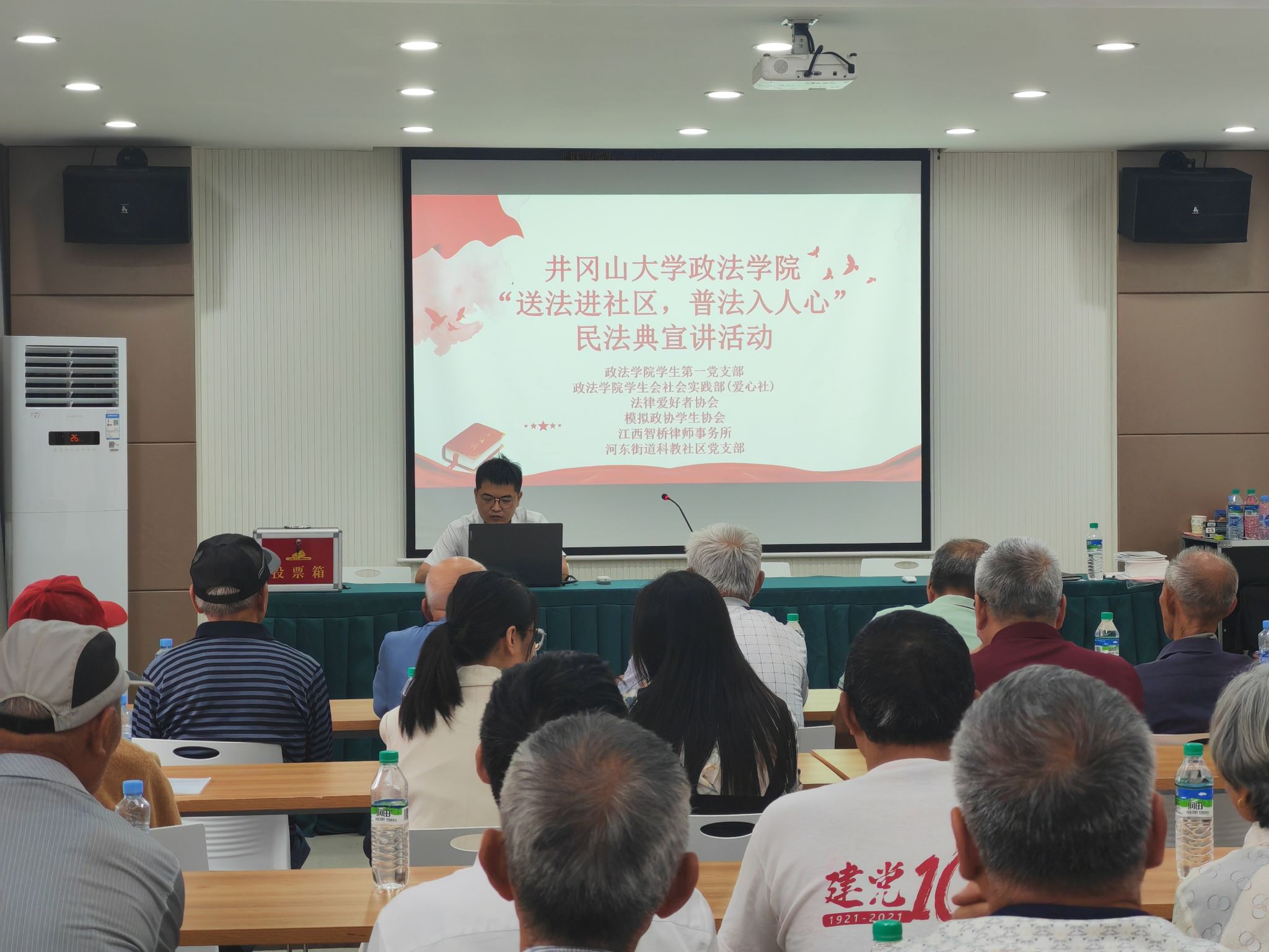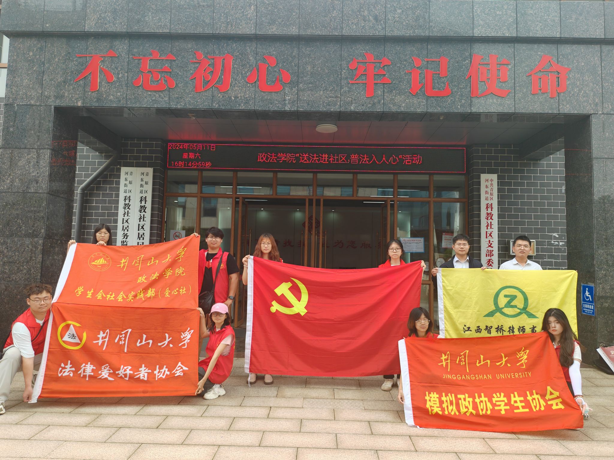 为进一步提高社区群众的法治观念和法律意识,营造社区人人懂法、处处讲法的良好氛围,5月11日下午3时政法学院社会实践部(爱心社)联合井冈山大学法律爱好者协会、井冈山大学模拟政协学生协会和政法学院学生第一党支部,与吉安市智桥律师事务所共同开展“送法进社区,普法入人心”法律普及宣传活动。