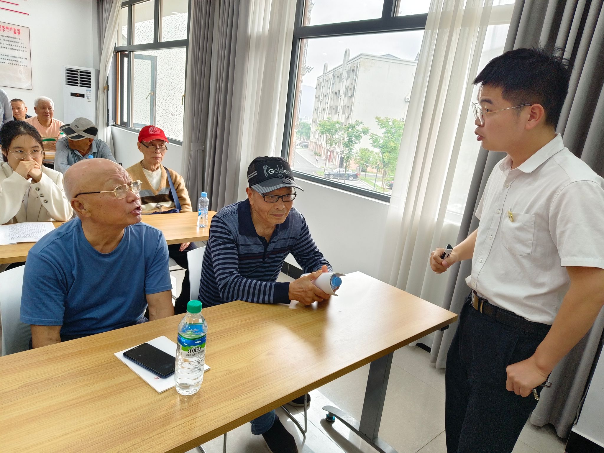 活动伊始,志愿者们精心布置活动现场,摆放讲座资料,引导居民就座参加活动,与律师进行紧密沟通,确保活动的顺利开展。智桥律师事务所律师结合多年的执业经验为居民深入浅出地讲解了民法部分内容,并结合日常生活实例,让居民更加直观地明白法律是如何在生活中运用的。讲座结束后,志愿者们运用专业知识帮助律师为居民解答疑惑,现场气氛热烈,志愿者与居民都收获颇丰。
