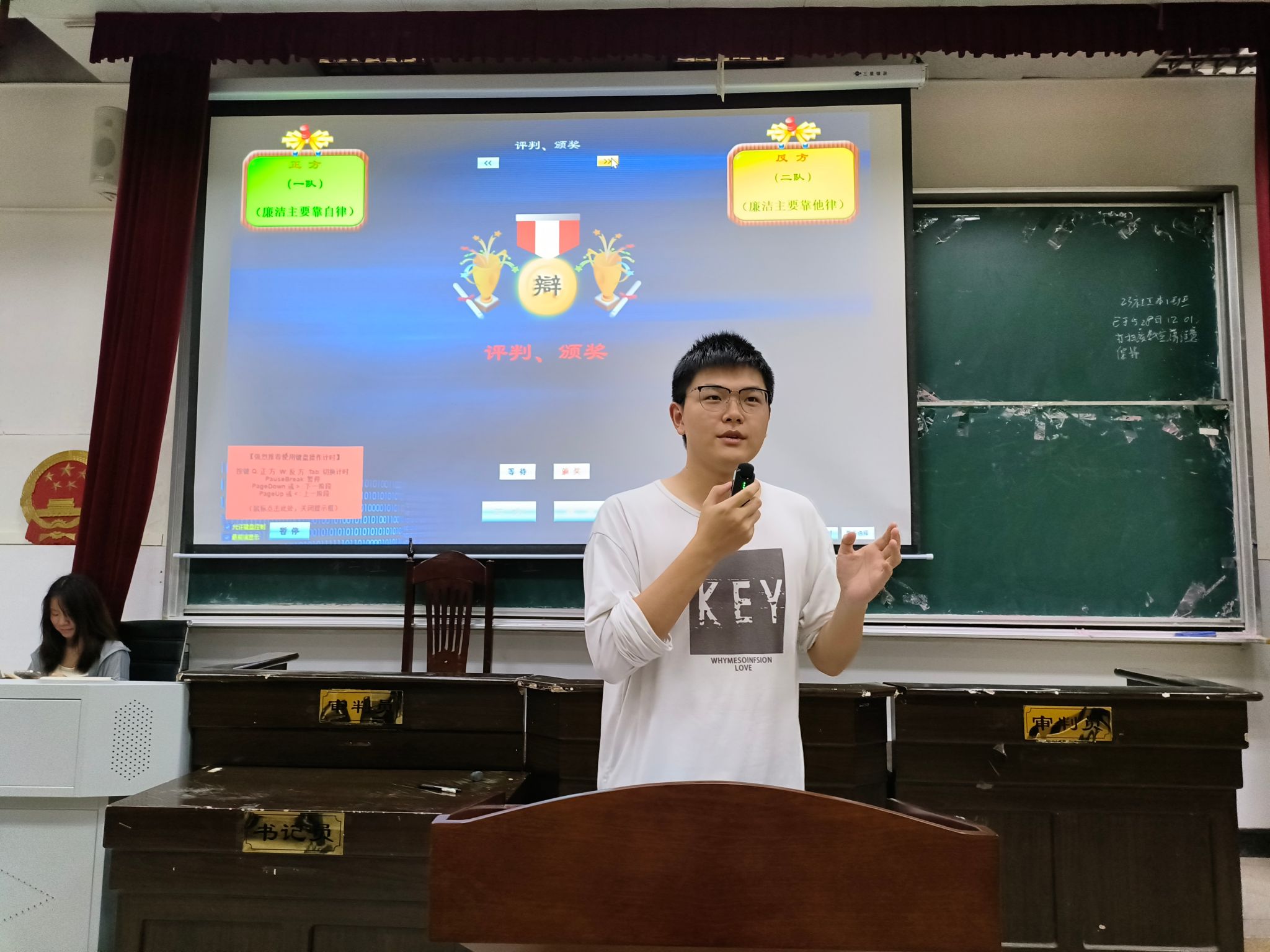 为提高学生的口才表达能力和逻辑思维能力,丰富课余生活,5月28日晚6时30分,政法学院于五栋408教室举行了“育诚信美德,树廉洁之风”主题辩论赛初赛,本次辩论赛由建筑工程学院张志、人文学院廖福娣以及政法学院朱婉玲担任评委,政法学院习剑平副院长莅临指导。