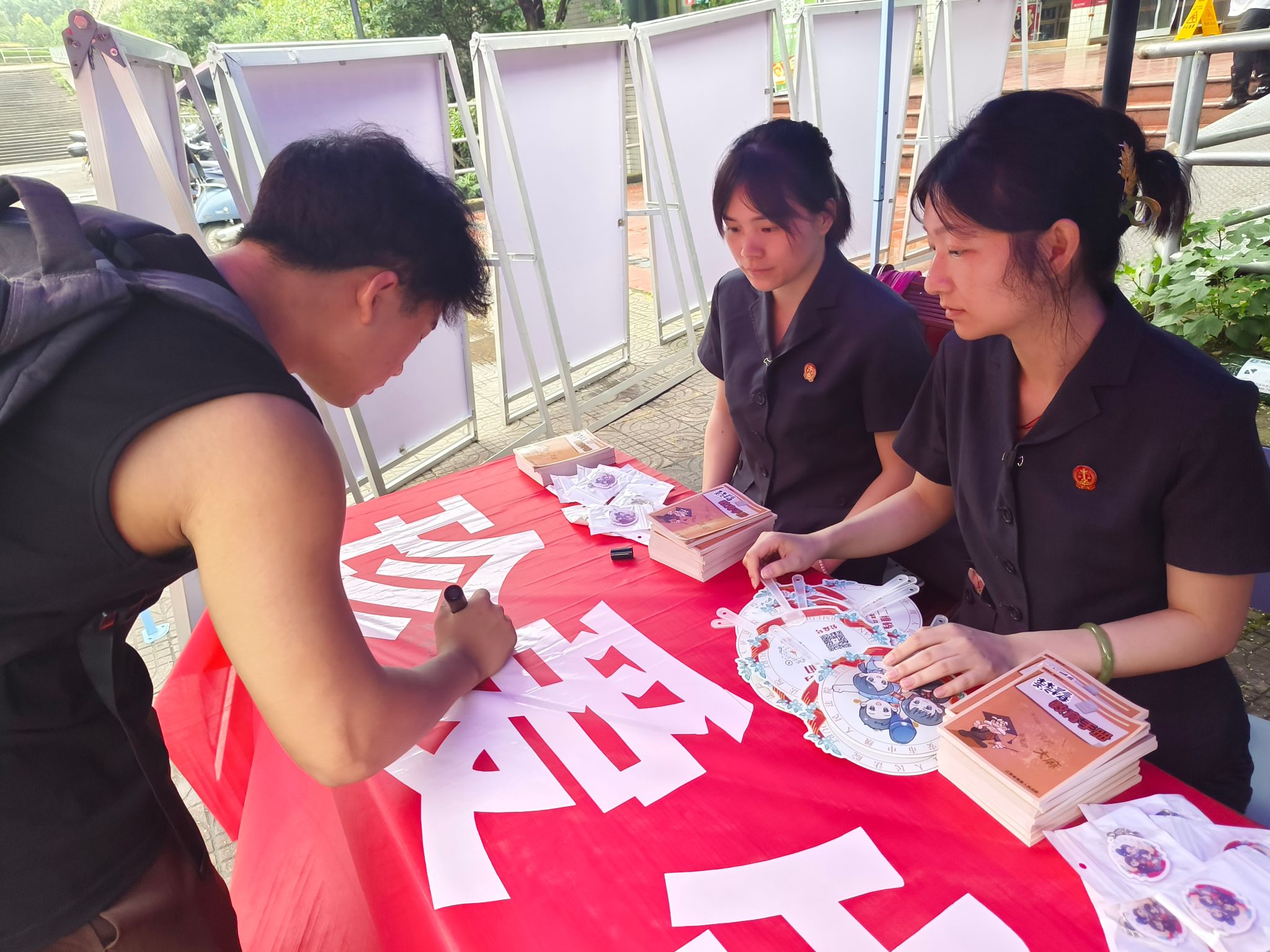 活动中,吉安中院干警和志愿者们通过发放禁毒宣传手册、禁毒宣传小礼品、禁毒宣传展板等方式,向学生讲解毒品的种类和危害、新型毒品常见伪装、麻精药品滥用危害等禁毒知识,告诫学生要严格遵从医嘱,防范药物滥用,提高警惕,拒绝非法渠道购买药品。 此外,吉安中院干警还对在场的同学们开展了禁毒知识问答,在一问一答之间向同学们介绍隐藏在日常生活当中的新型毒品,引导学生正视毒品的危害,自觉抵制毒品。最后,同学们也在禁毒宣传横幅上签名,以表明对“毒品”说“不”的坚定决心。