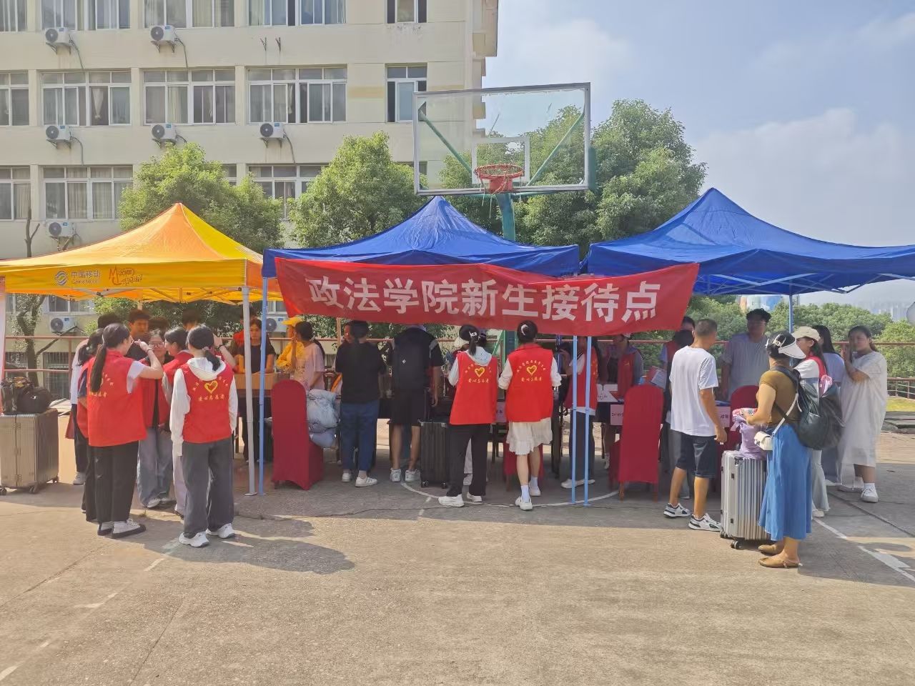 时维九月,序属三秋,莘莘学子,欢聚政法。9月4日至6日,在政法学院全体师生的共同努力下,来自全国各地的2024级新生于19栋篮球场迎新点处顺利报到,各项迎新工作圆满完成。政法学院党委书记吴高平,副院长习剑平、欧阳晓安及2024级新生班主任、辅导员亲临迎新现场。