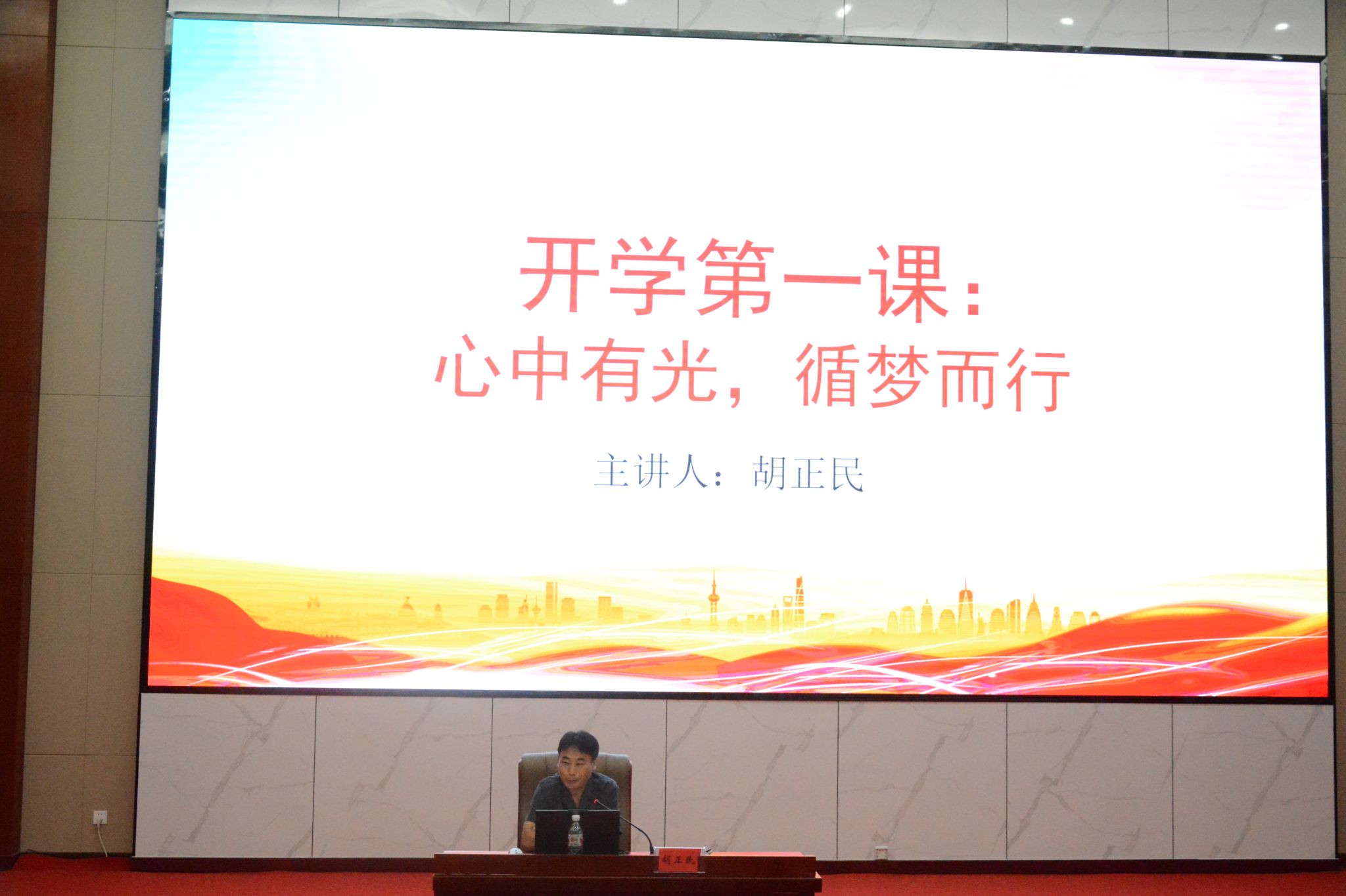 讲座中,胡正民从党的二十大报告中习近平总书记对新时代青年的寄语引入,围绕“爱国、学习、创新”三个关键词,以“心中有光,循梦而行”为主题给新同学们上了一堂精彩的“开学第一课”。他首先结合习近平的七年知青岁月,生动讲述了个人理想与国家命运紧密相连的深刻内涵。他号召同学们树立远大志向,将个人的梦想融入实现中华民族伟大复兴的中国梦之中,心中有光,脚下有力,用实际行动践行爱国主义精神。随后,在谈及“大学生该如何学习”这一话题时,他为同学们提出了以下建议:一、秉持初心,刻苦钻研,充分利用学习资源;二、勤做笔记,保持自律,精准设立学习目标;三、博览群书,拓宽眼界,践行体系化阅读。最后,胡正民特别强调了创新对于青年成长的重要性。他指出,面对日新月异的社会变革,青年学生应勇于探索、主动发展,做好学业规划,明确自己会什么、喜欢什么、擅长什么,并朝着既定目标不懈奋斗。对于法学专业学生,胡正民还提出了备战法考的针对性建议,鼓励学生勇于探索,培养创新能力和科学精神,主动关注法学专业前沿动态,积极思考探索,解放思想。
