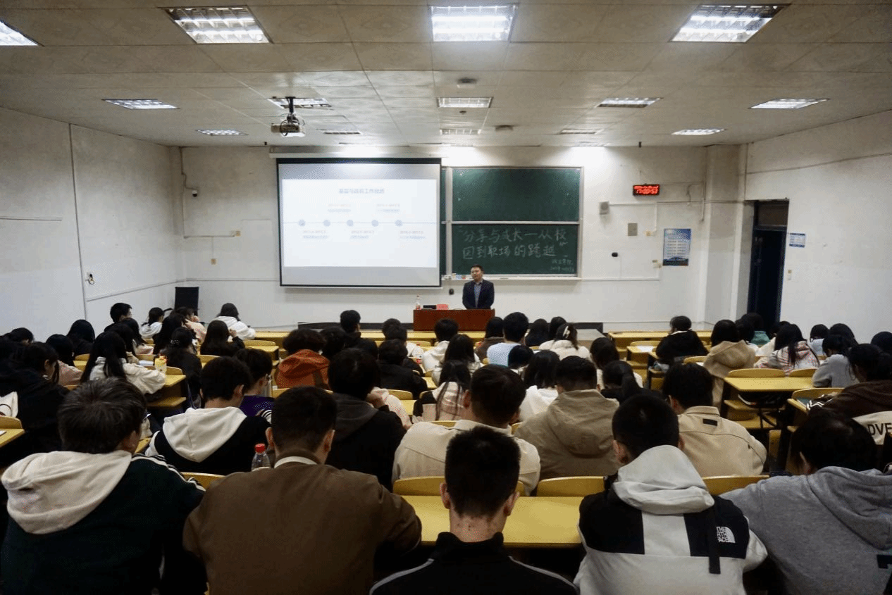 徐银国律师从工作经历、服务客户概览、律师事务所管理和个人擅长领域四个方面展开宣讲,并就广东银国律师事务所的规模、业务范围和人才需求进行介绍。他对正处于法学本科学习阶段的同学们提出诸多宝贵建议,希望同学们能够成长为兼具扎实法律专业知识和实践能力的人才。同时,徐银国还结合自身丰富的工作经历,为同学们阐述了在乡镇任职与城市任职的差异,让同学们对职场就业方向有了更为清晰的认知。