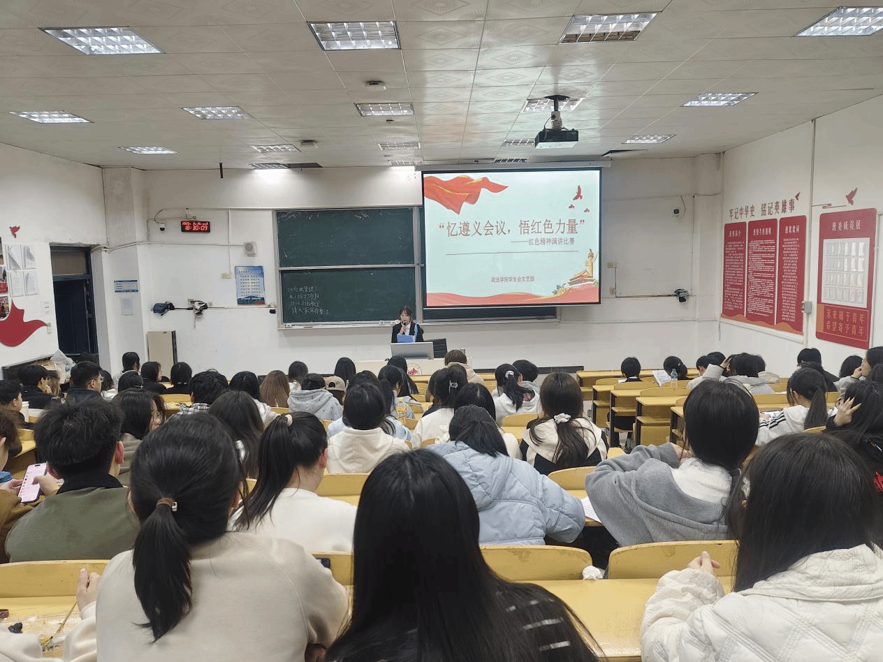 为深入学习贯彻习近平新时代中国特色社会主义思想,传承和弘扬遵义会议精神,凝聚起奋进新征程的强大精神力量,3月19日晚6时30分,政法学院学生会文艺部于5栋教学楼407教室开展“忆遵义会议,悟红色力量”演讲比赛。政法学院24级学生积极参与。