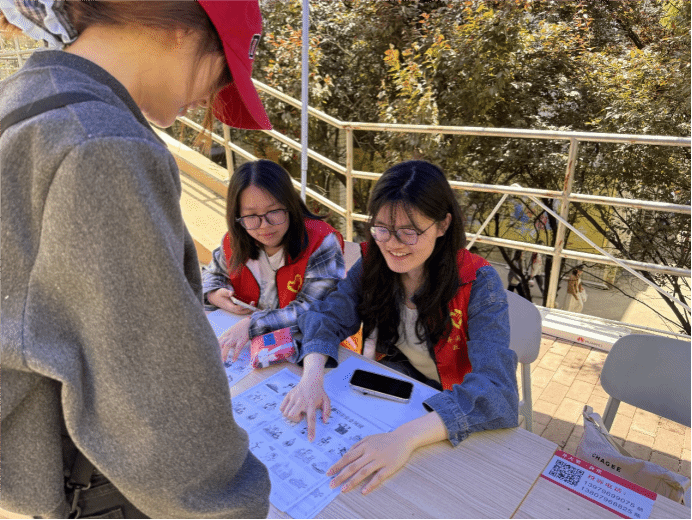 “国家安全,你我同行”全民国家安全教育日宣传活动现场设置了国家安全知识科普展区,涵盖政治安全、网络安全、生态安全等16个领域,并配有专题展板与互动答题卡。志愿者们通过“看图识安全”趣味游戏,带领同学们识别各类国家安全风险,以寓教于乐的形式推动总体国家安全观深入人心。