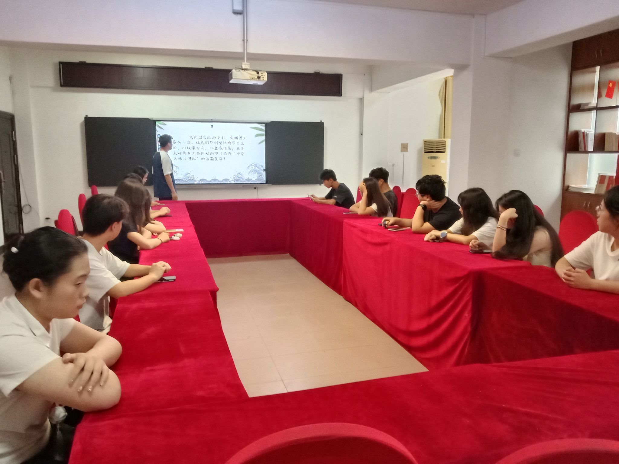 为深化民族团结教育,增进学生对多元民族文化的了解,搭建好各民族学生交流平台,5月15日下午2时30分,政法学院于19栋党员活动室开展以“民族故事汇,共融一家亲”为主题的多民族学生故事交流分享会。
