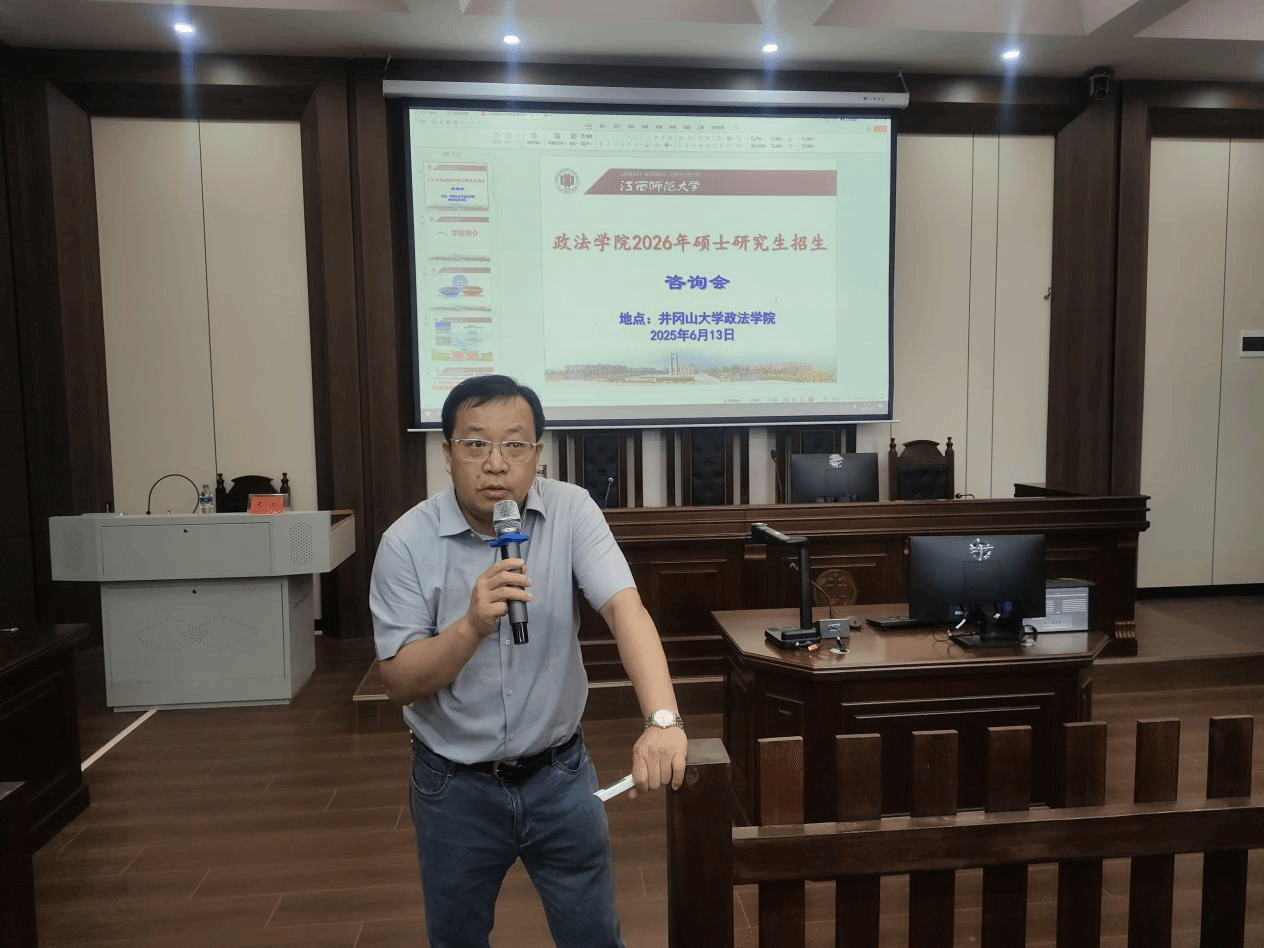 为帮助同学们深入了解研究生招生政策,合理规划考研方向,6月13日下午3时30分,江西师范大学王翔副教授莅临政法学院,在5栋408教室开展2026年研究生招生宣讲会。