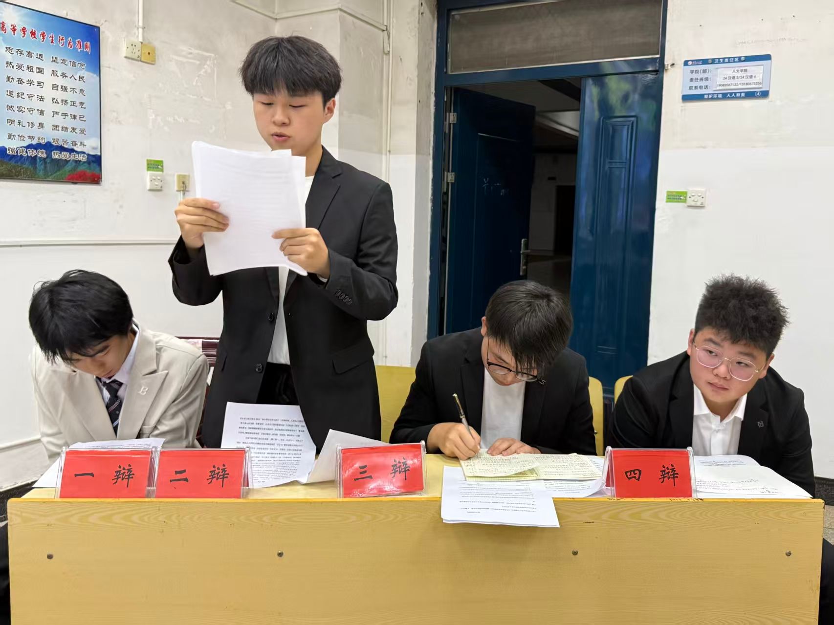 为庆祝井冈山大学建校六十七周年,提升新生的思辨能力、语言表达水平与团队协作意识,同时为政法学院辩论队正式招新储备人才,9月至10月,政法学院于五栋教学楼举行2025年“新生杯”辩论赛。