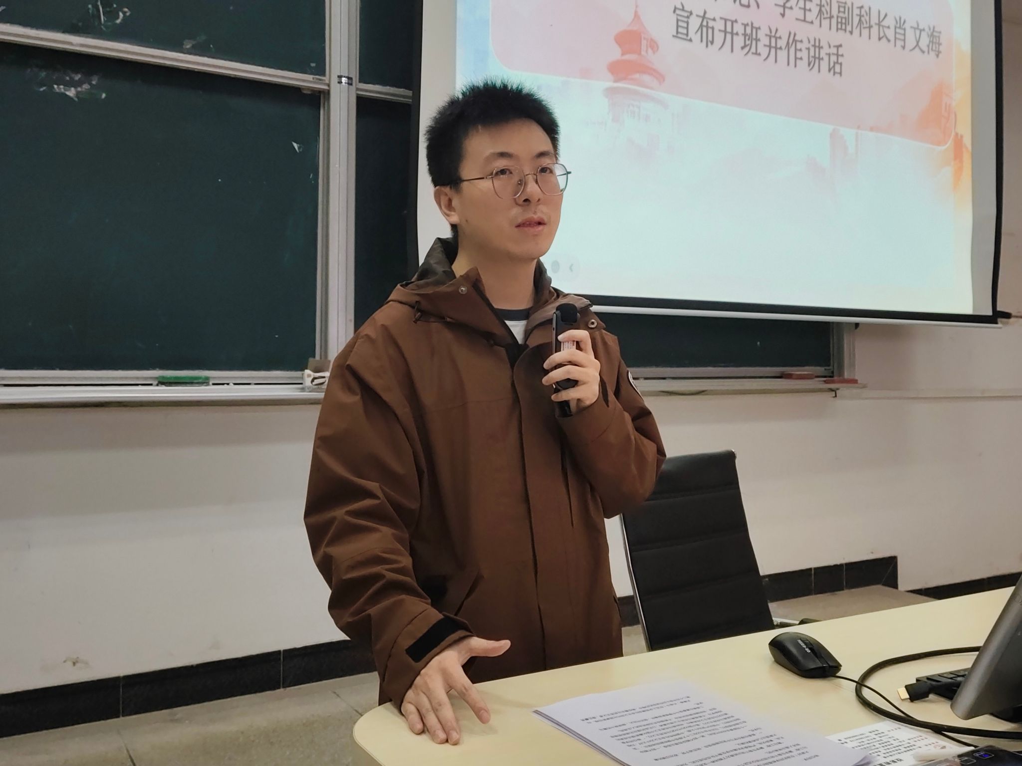 为深入学习贯彻习近平新时代中国特色社会主义思想和党的二十届四中全会精神,用社会主义核心价值体系引领青年,打造一支思想先进、能力突出、作风优良的学生骨干队伍。10月30日下午2时30分,政法学院于5栋407教室举行第十六届“青马工程”暨学生骨干培训班开班仪式。政法学院团委副书记、学生科副科长肖文海,研究生辅导员助理林福琴、刘智奇,政法学院第十九届大自委团委学生会全体人员以及25级各班团支部书记、班长、副班长到场参加。