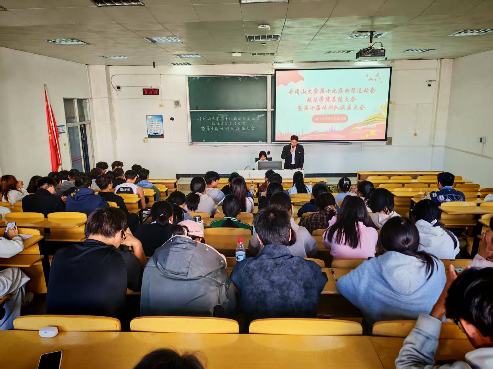 为总结赛事经验,传承体育精神,推动学院体训队持续发展,11月6日下午3时30分,政法学院于5栋307教室举办第十九届田径运动会总结大会暨第十届体训队换届大会。政法学院团委副书记、学生科副科长肖文海,辅导员欧阳蓓、葛以璇,研究生辅导员林福琴,教练员周硕、冯博涵,学院全体运动员及第十九届大自委团委学生会全体成员参加本次会议。