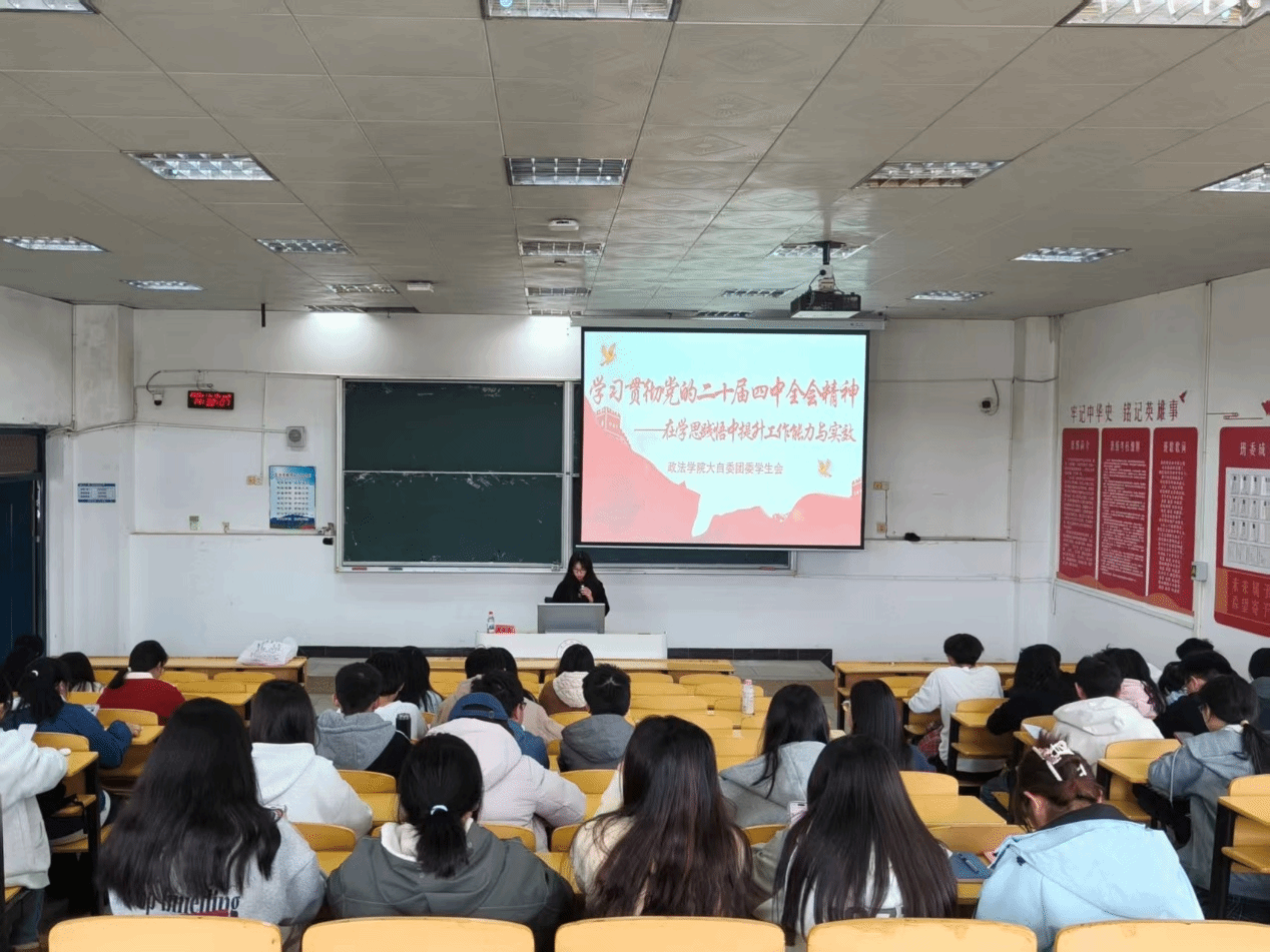 为明确新时代青年的历史方位,增强为国担当的自觉,11月13日下午,政法学院在5栋407教室开展“学习贯彻党的二十届四中全会精神——在学思践悟中提升工作能力与实效”宣讲,由学生兼职团委副书记黄晶晶主讲,第十六届“青马工程”暨学生骨干培训班全体成员参与学习。