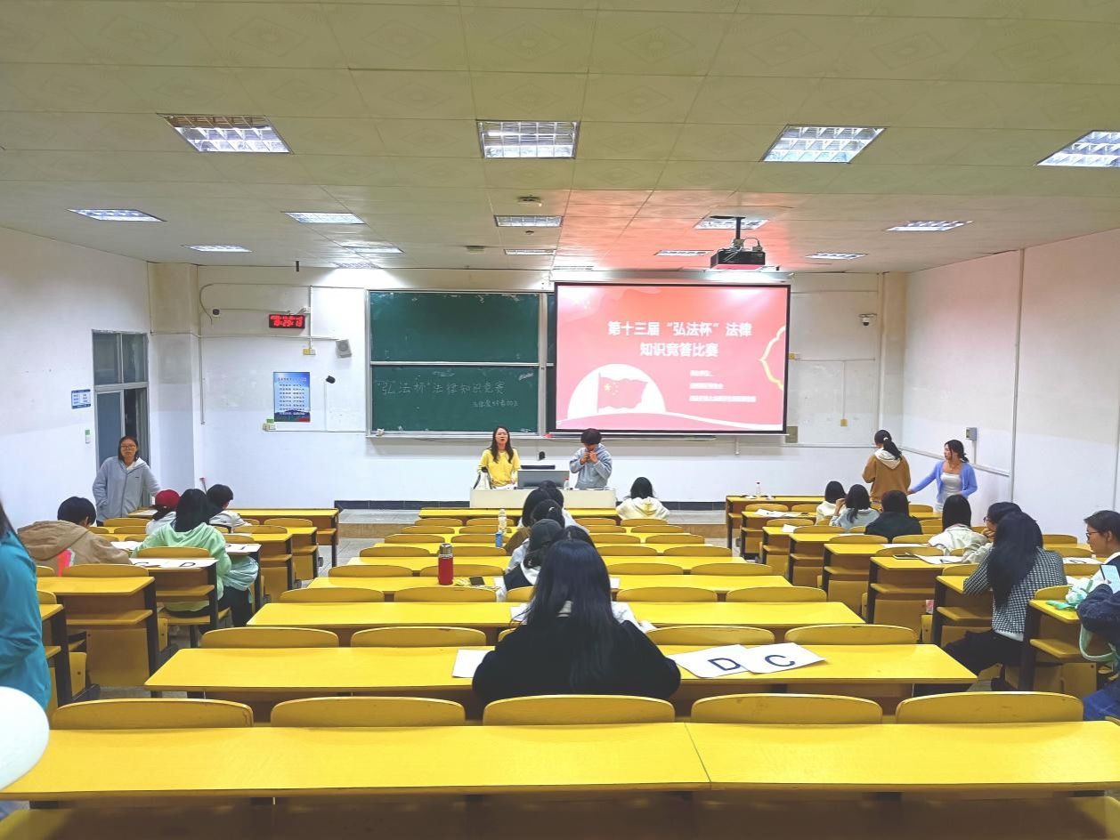 为传播法律知识,深入贯彻落实《民法典》和《宪法》的学习,领会其中法治理念,11月15日下午6时30分,由法律爱好者协会、政法学院综合素质拓展部及学生资助服务部联合主办的“弘法杯”法律知识竞赛决赛在五栋307顺利开展。
