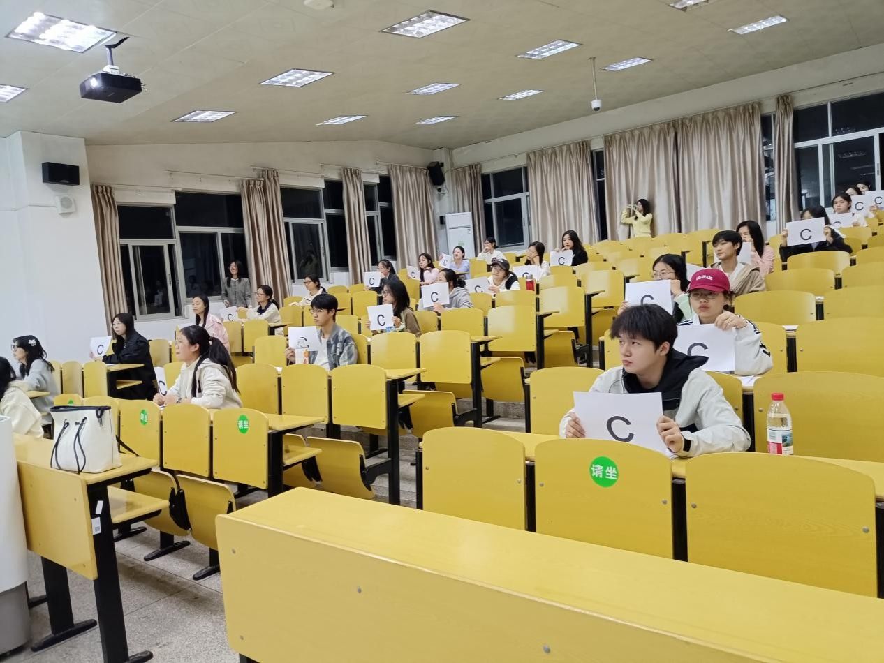 活动前期,工作人员积极宣传,广泛动员24级、25级及法律爱好者协会的同学们踊跃参与。竞赛分为初赛和决赛两个阶段:11月14日通过笔试的形式,选出前三十名同学进入决赛;11月15日以现场竞答形式进行决赛,题型包括单选题和多选题,采用记分制,决出前十名,比赛在主持人宣读规则后正式拉开帷幕。竞赛过程中,选手们思维敏捷,题目一经宣读,选手们迅速举起手中的选项牌,脸上满是自信从容,展现出扎实的法律知识储备和良好的法律素养。现场竞争激烈,选手们不分伯仲,四名选手进入加时赛,以手写填空题的形式进行。最后主持人宣布:徐勋荣获一等奖,李卓憬、何福青荣获二等奖,李佳雨、邓奥嫔、钟倩荣获三等奖。