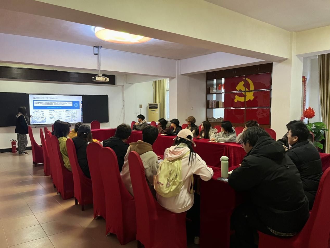 会议围绕心理话题分享与典型案例分析两大主题展开。会上,24社工班贾菲琳同学以《心理案例研讨——聚焦同辈困扰,共学支持技巧》为主题,分享了一例大学生因学业压力与同伴比较引发情绪困扰的干预过程。她从案例背景、核心需求、干预步骤到效果评估进行了系统讲解,提出的“共情优先、小目标推进、资源链接”的支持策略,为心理委员开展日常工作提供了实用参考。此外,24法学2班梁家玮同学以《不要提前焦虑》为题,从认知层面剖析焦虑的本质,引导大家关注当下、减少内耗。肖文海对两位同学的分享进行点评,并带领全体心理委员共同明晰了班级心理委员工作职责与边界,强调要增强责任意识,密切关注同学心理状态,做到早发现、早报告、早介入。