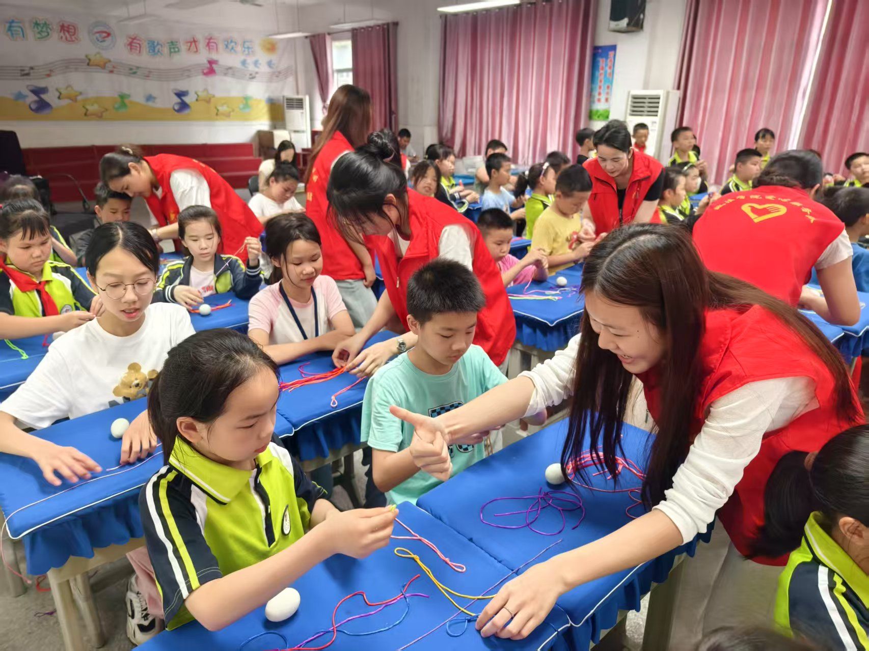 为引导学生感受传统节日的文化内涵,增强对中华优秀传统文化的认同与传承,5月22日下午2时至5时,政法学院学生会社会实践部(爱心社)在古南一小开展了“彩线编童趣,蛋兜挂端阳”主题活动,十余名爱心社志愿者与三十余名小学生及其班主任共同参与。