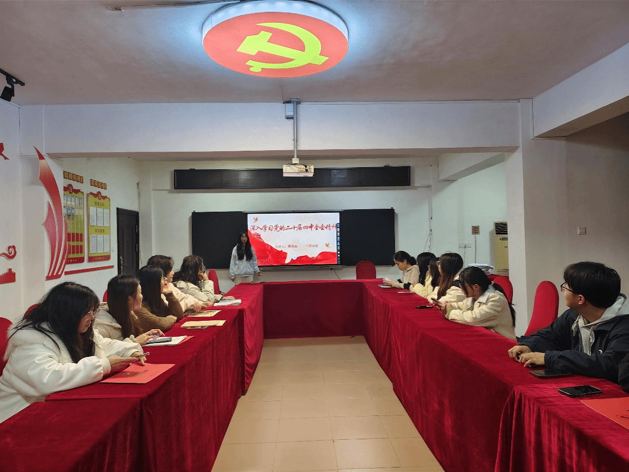 为深入学习贯彻党的二十届四中全会精神,引导学生骨干进一步强化理论武装、筑牢思想根基,提升政治素养,11月28日晚6时20分,政法学院于19栋党员活动室开展团委学生会学生骨干党的二十届四中全会精神专题学习活动。政法学院第十九届学生兼职团委副书记黄晶晶领学。