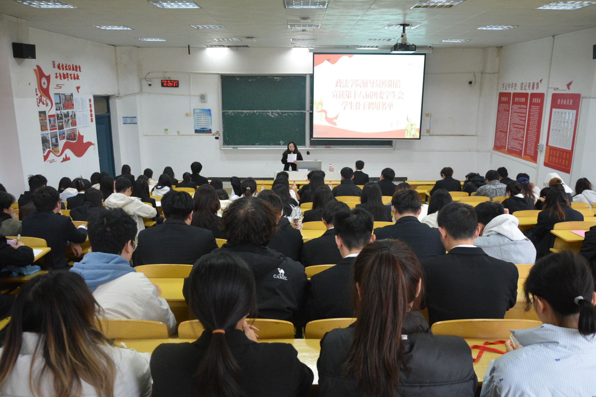 大会在庄严的中国共青团团歌声中拉开帷幕。政法学院第十八届学生兼职团委副书记陈曼首先发言,分享工作经验并对新一届骨干寄予厚望。随后,欧阳蓓宣读第十八届团委学生会学生骨干聘用名单,肖文海与欧阳蓓共同为届满离任的骨干颁发聘书。紧接着,欧阳蓓宣布第十九届团委学生会学生骨干试用名单,现场气氛热烈。