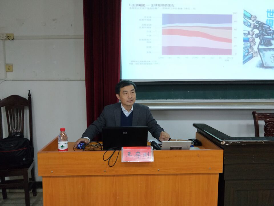 11月16日上午,同济大学政治与国际关系学院副院长王存刚教授于政法学院五栋408教室作了题为“当前的世界格局和大国关系”的讲座。讲座由政法学院党委副书记吴高平主持,学院政治学与行政学专业的师生近100人到场聆听了讲座。