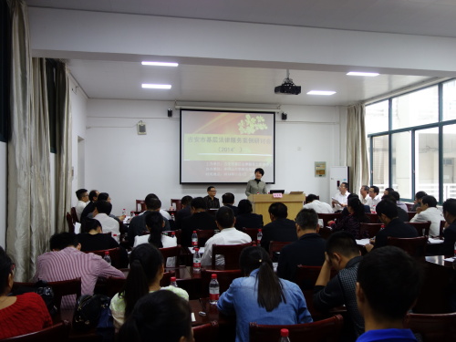 应吉安市司法局邀请,由吉安市基层法律服务工作者协会主办、井冈山大学政法学院协办的2014吉安市基层法律服务案例研讨会于2014年11月1日在井冈山大学政法学院举行,本次案例研讨会为期1天,会议的主题是 “加强学校和法律事务部门的交流合作,提升基层法律服务工作者业务水平”。参加本次研讨会的有全市各县(市、区)司法局基层科负责人、有关基层法律服务工作者、我院部分法学专业学生60余人。开幕式上,我院副院长欧阳晓安和吉安市司法局副局长李玉秀分别代表协办方和主办方发表了简短的致辞。我院教师欧阳晓安、王华、易艳娟作为点评专家参加了本次研讨会。