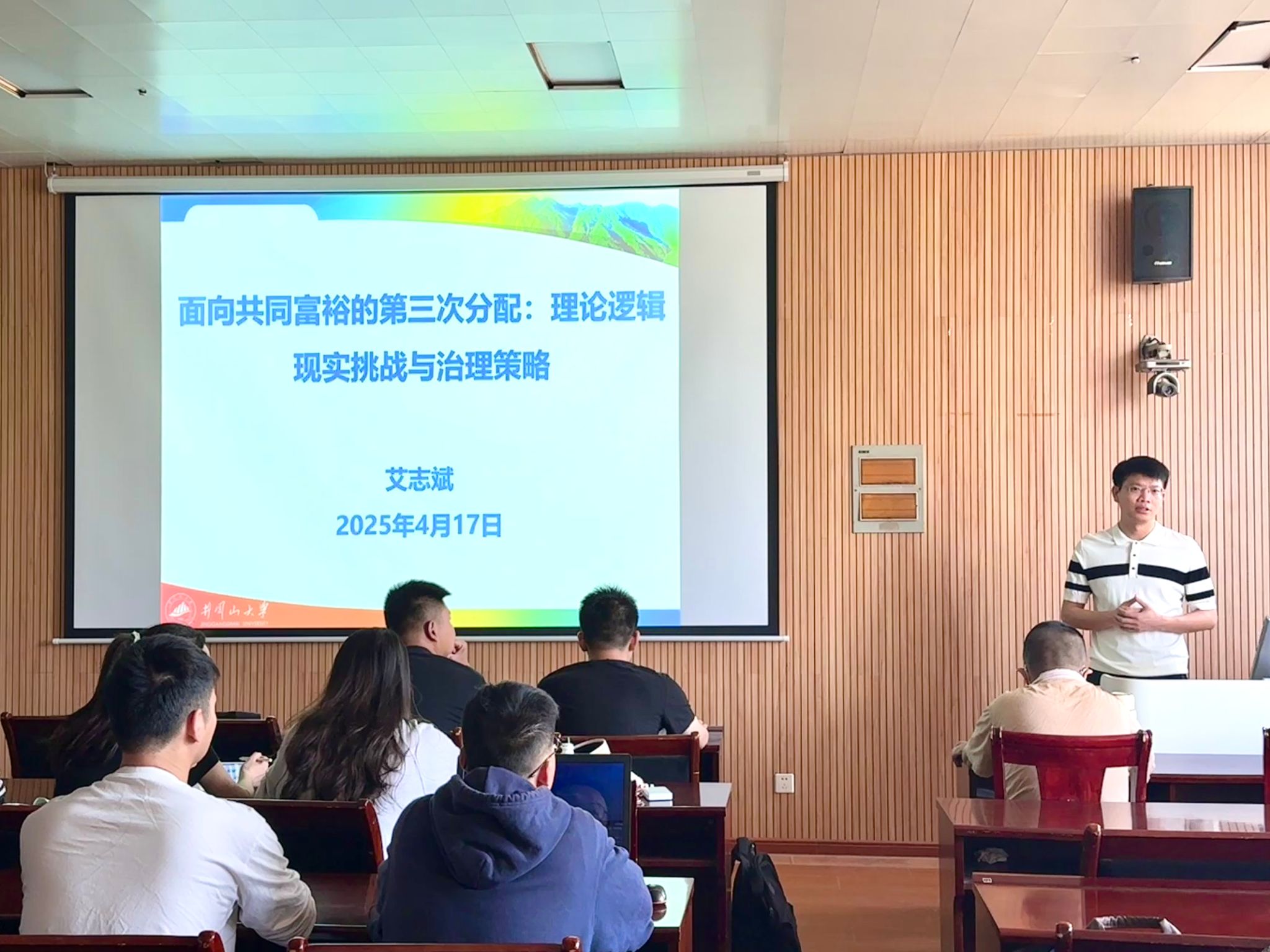 2025年4月18日上午,“广学·导师讲坛”第四期在10栋A区10A116室顺利开展。此次论坛邀请到我院艾志斌老师作为主讲嘉宾。全体2024级社会工作专业研究生聆听了讲座。此次论坛主题为“面向共同富裕的第三次分配:理论逻辑、现实挑战与治理策略”。