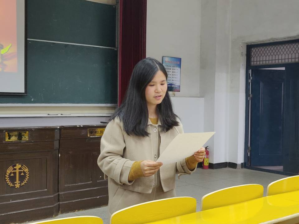12月6日下午,政法学院学生第一党支部入党公开答辩大会暨预备党员接收大会在5栋408教室顺利进行。政法学院学生第一党支部书记杨婷出席,支部全体在校正式党员、预备党员、入党积极分子均到场参加。
