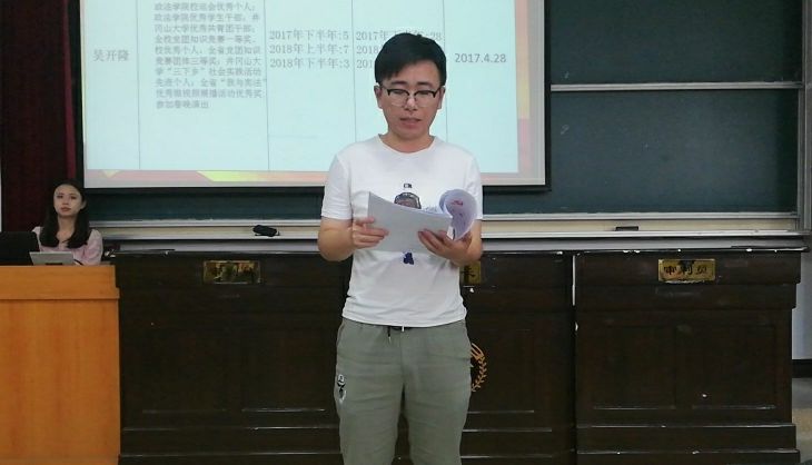 2019年6月6日下午2时30分,政法学院学生第二党支部预备党员接收大会在5栋408教室顺利召开,政法学院学生第二党支部书记肖文海出席,支部党员,预备党员,入党积极分子到场参与。