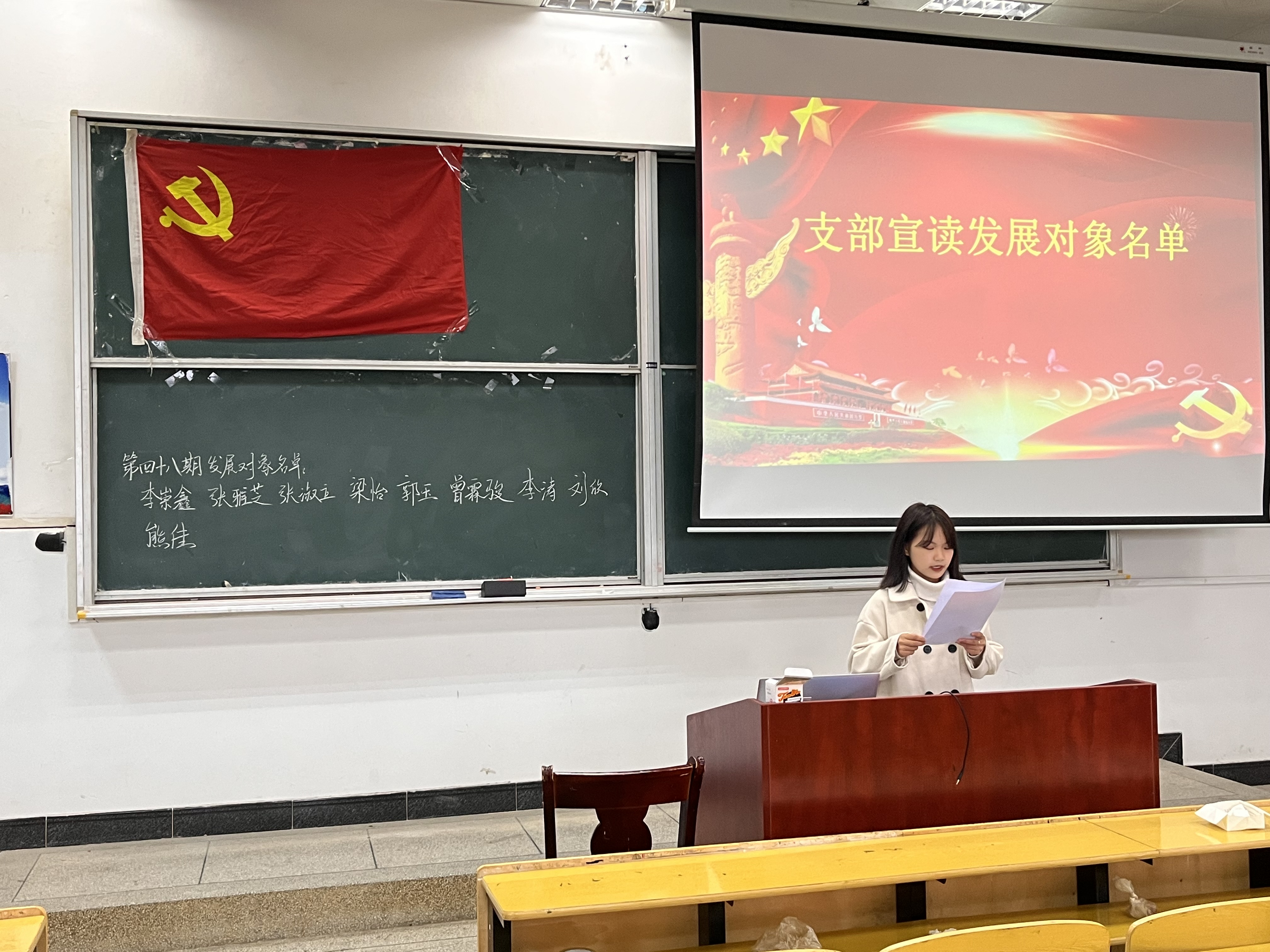 随后由入党介绍人介绍发展对象有关情况并表明态度,支部委员会报告发展对象的审查情况并发表支委会意见,与会人员发表意见。正式党员投票表决形成决议,大会正式将李崇鑫,张雅芝,张淑立,梁怡,郭玉,曾霖骏,李涛,刘欣,熊佳9名同志接收为中共预备党员。