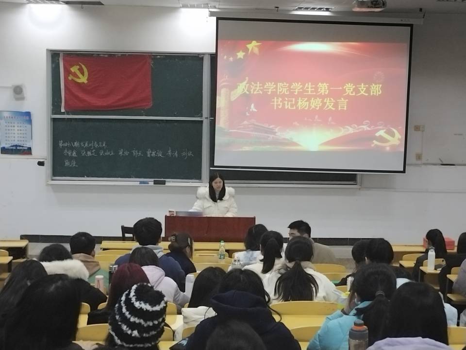 2022年12月1日14时,政法学院学生第一党支部预备党员接收大会在5栋407教室顺利召开,学生第一党支部党员与部分入党积极分子参加本次大会。