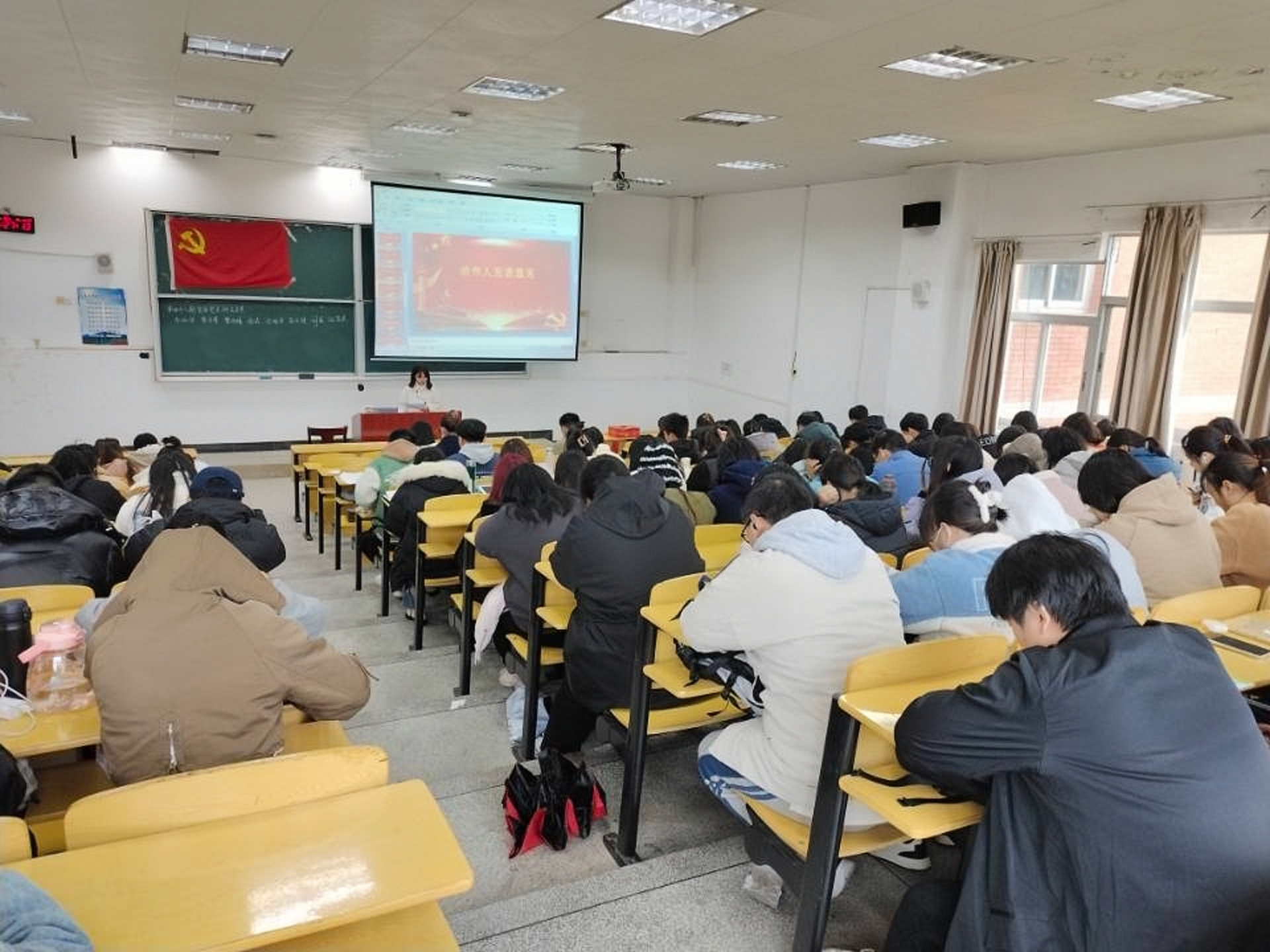 2022年12月11日14时,政法学院学生第一党支部预备党员转正大会在5栋407教室顺利召开,学生第一党支部党员与部分入党积极分子参加本次大会。 本次大会按照规定流程进行,支部宣读转正对象名单,转正对象宣读转正申请书,培养人、支委会介绍预备党员在预备期间的考察情况并表明态度,正式党员进行民主评议、无记名投票后,正式将李淑颀、李子羿、曾雨晴、余淼、安瑞雪、匡云国、刘茜、伍蓉英八位同志转正为中共正式党员。