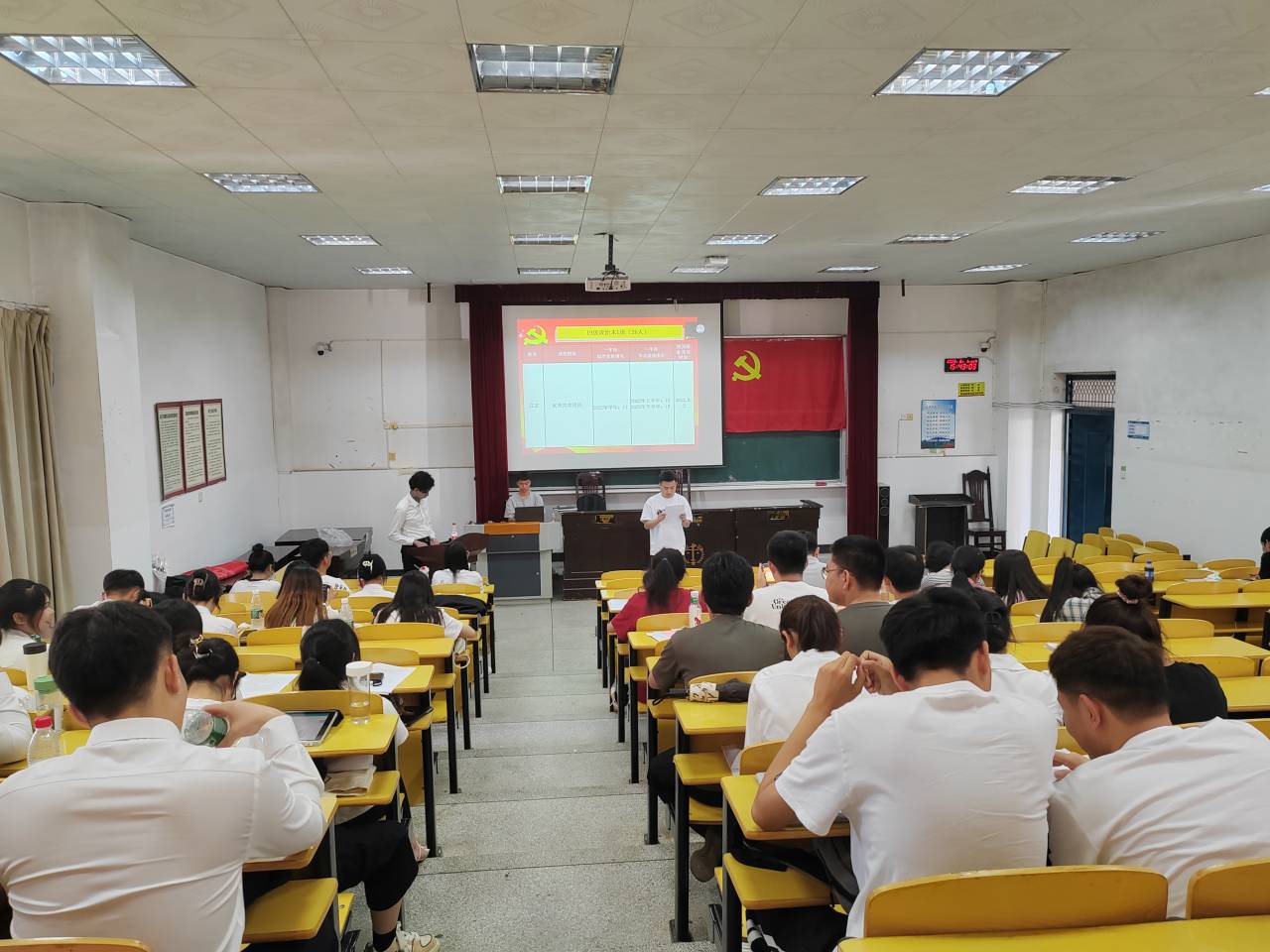 2023年6月1日下午,政法学院学生第二党支部于5栋408教室顺利召开转正接收大会,党支部书记肖文海同志出席,支部党员、入党积极分子到场参与。