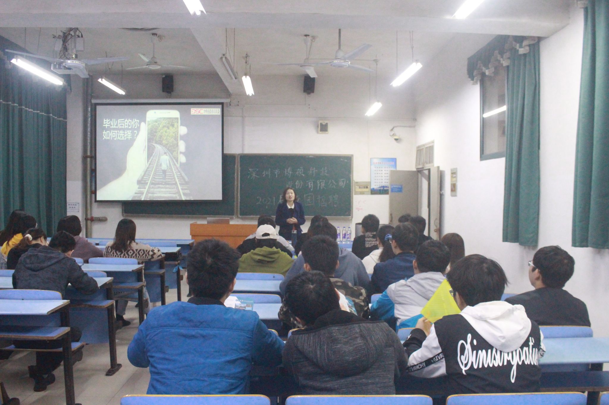 为做好我院2021届毕业生的就业工作、提供毕业生就业机会,10月19日晚7时,我院于10栋A-013举办深圳博硕科技股份有限公司专场招聘会,我院毕业生、机电学院毕业生积极参加。