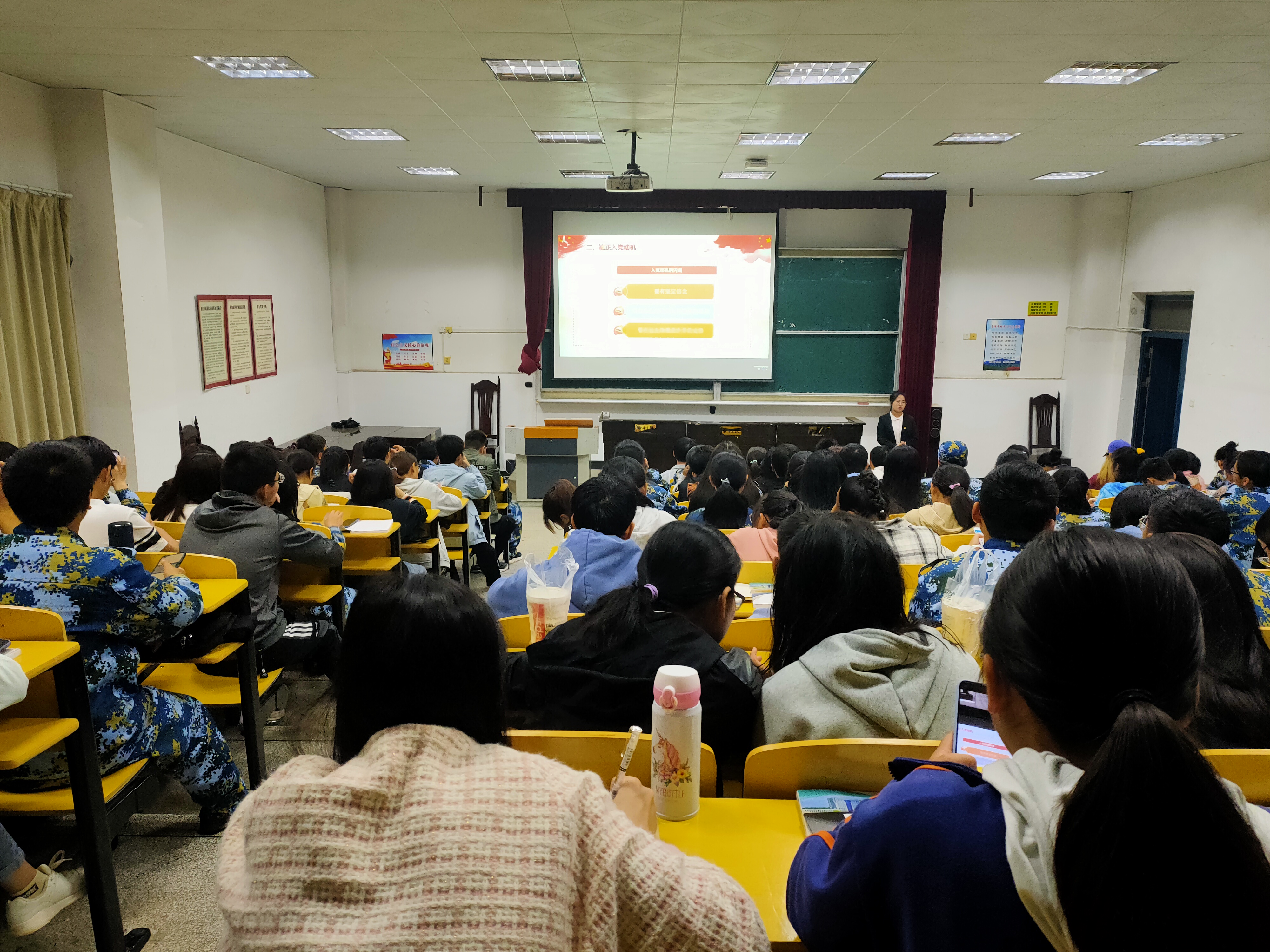 为了让2020级新生尽快了解和融入大学生活,加深对党的了解,树立正确的指导思想,端正入党动机,鼓励新生积极向党组织靠拢。10月18日晚,政法学院学生第二党支部于五栋408室顺利开展“不忘初心跟党走”新生入党启蒙教育活动。此次活动由支部学生党员廖慧泉主讲,20级政治班、事管班、社工班全体学生到场参与。 活动伊始,通过播放PPT的形式,廖慧泉同志围绕党、党组织、党支部,端正入党动机,如何加入中国共产党,入党材料书写规范,寻初心、树理想这五个方面,向新生们详细阐述了书写入党申请书、自传和思想汇报的规范性,以及端正入党动机的重要性。她回忆起自己从共青团员,到入党积极分子,再到成为一名预备党员的心路历程,她说党员的身份不仅是一种使命,更是一种责任感,要在生活中找差距、转落实,发挥好党员同志的先锋模范作用。