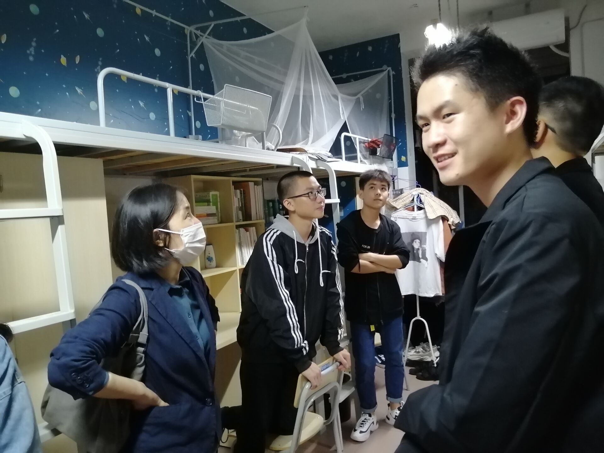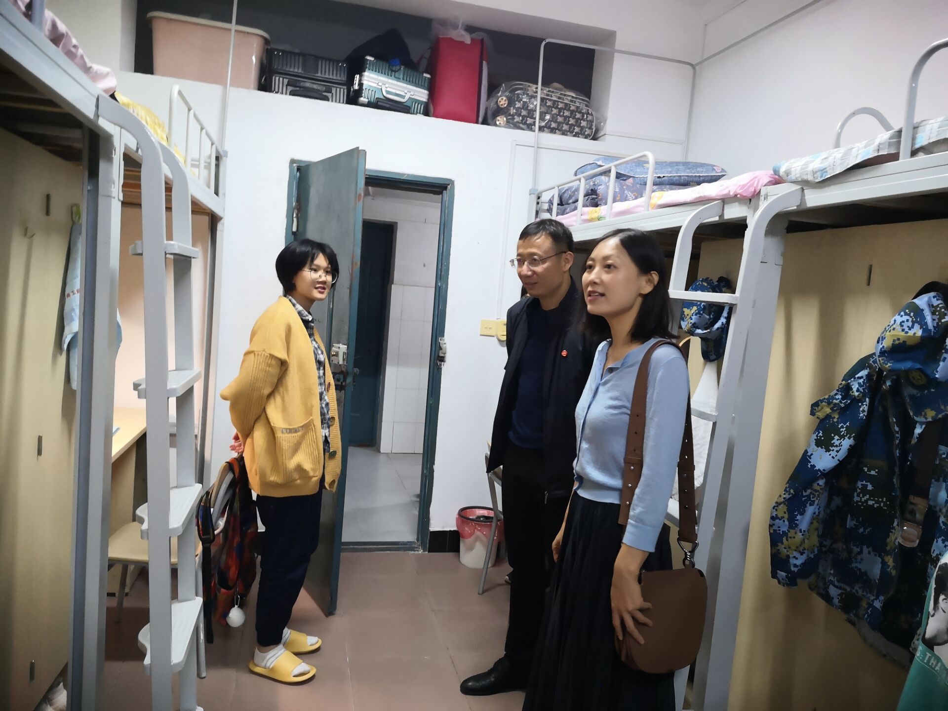 为了解新生情况,帮助其尽快适应大学生活,9月27日晚19时00分,学院院长仰和芝,党委副书记吴高平,副院长欧阳晓安,团委书记、学生科科长杨婷及新生班主任、辅导员、学生干部等一行走访新生寝室,看望新生。