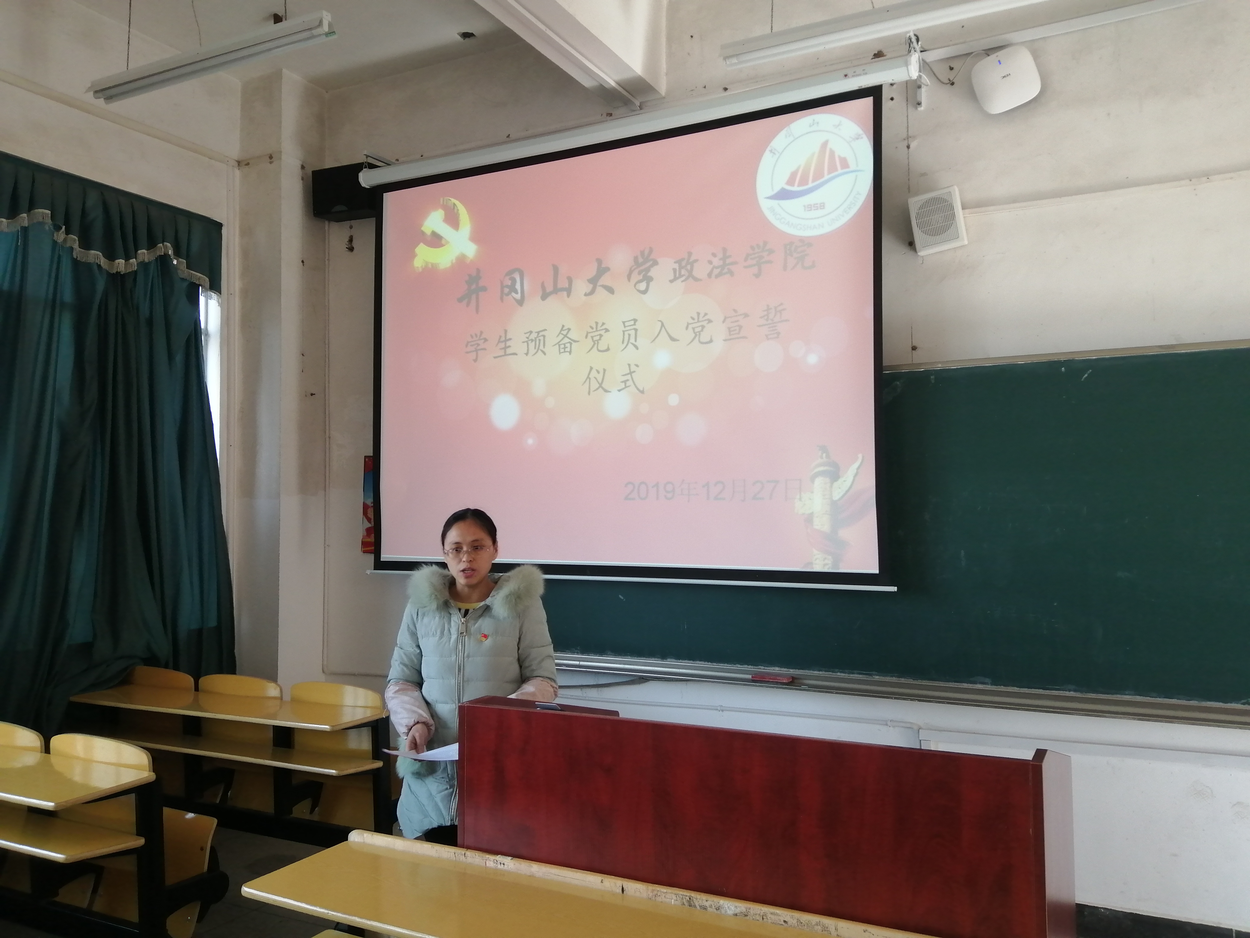 为对新入党的同志表示衷心地祝贺,经党委研究,我院党委决定在12月27日中午12时30分,于五栋405室举行政法学院预备党员宣誓仪式。参加此次宣誓仪式的领导有政法学院党委书记毛金文、党委组织员,新发展党员25名,及部分老党员代表。
