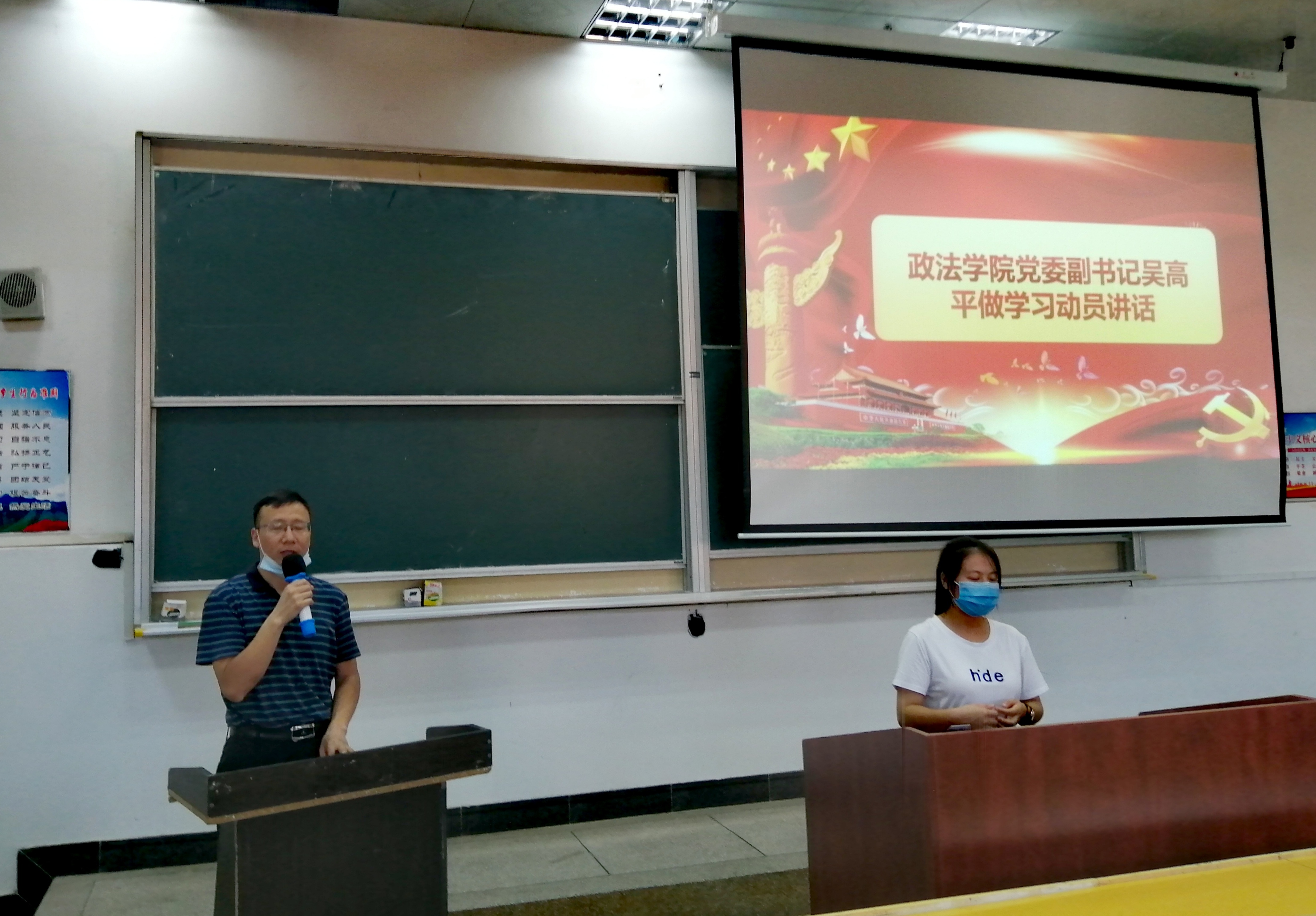 为加深学员们对党的性质和宗旨的认识,端正入党动机,同时树立共产主义理想,坚定走中国特色社会主义道路的信心与决心。6月12日晚上6时30分,我院党委在五栋407室开展开班仪式暨首场专题辅导讲座,政法学院党委副书记吴高平主讲,党委组织员康积勤主持,培训班学员参加此次辅导。