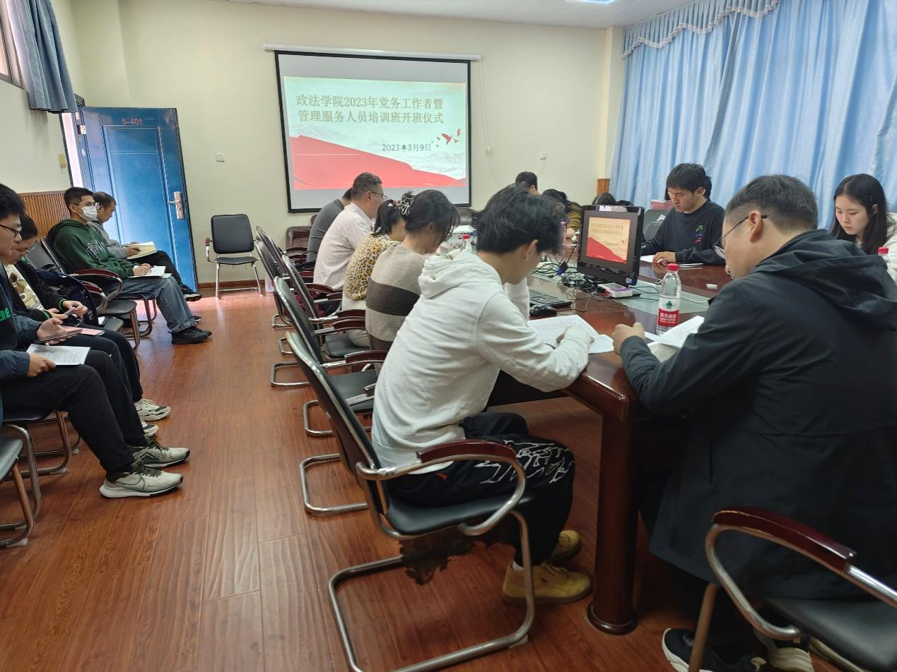 2023年3月9日下午,井冈山大学政法学院党务工作者暨管理服务人员培训班《提高“政治三力”,提升管理服务水平》讲座于5栋401举行,由政法学院党委书记吴高平主讲。政法学院政法学院系副主任,专业负责人,各教研室主任、党支部书记、各部门科长与从事党务工作人员参加此次讲座。