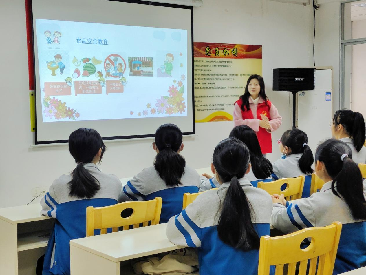 3月5日,迎着清晨的第一缕朝阳,党员志愿者们身着红马甲,早早在校门口集合完毕,精神抖擞地出发前往吉州区习溪桥街道正丙角社区。在社区的文明实践中心,志愿者们走上讲台,通过视频与PPT展示相结合的方式,从青少年权利与义务、消防及食品安全等方面进行精彩的宣讲,引导青少年增强安全意识,做到尊法、学法、守法、用法。提问环节中,志愿者设有小糖果有奖互动,同学们踊跃举手,积极回答问题,把课堂气氛推向高潮。课后,志愿者们带动同学们一起给社区居民发放家庭安全宣传册,普及家庭安全知识,得到居民们的一致好评。