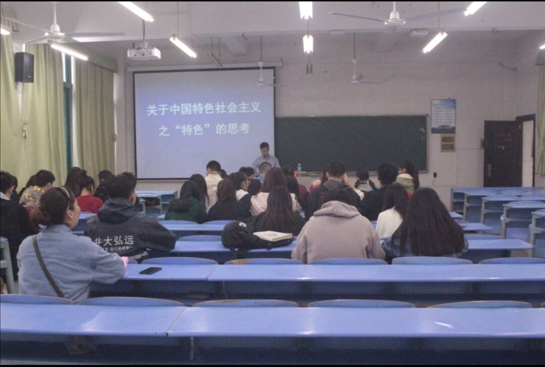为提高我院学子思想素质,使其更好了解中国特色社会主义本质。10月26日下午2时30分,我院于9栋106室举行“关于中国特色社会主义之‘特色’的思考”主题党课,此次党课由王志华博士担任主讲人,辅导员康积勤和部分党员、入党积极分子到场参与。