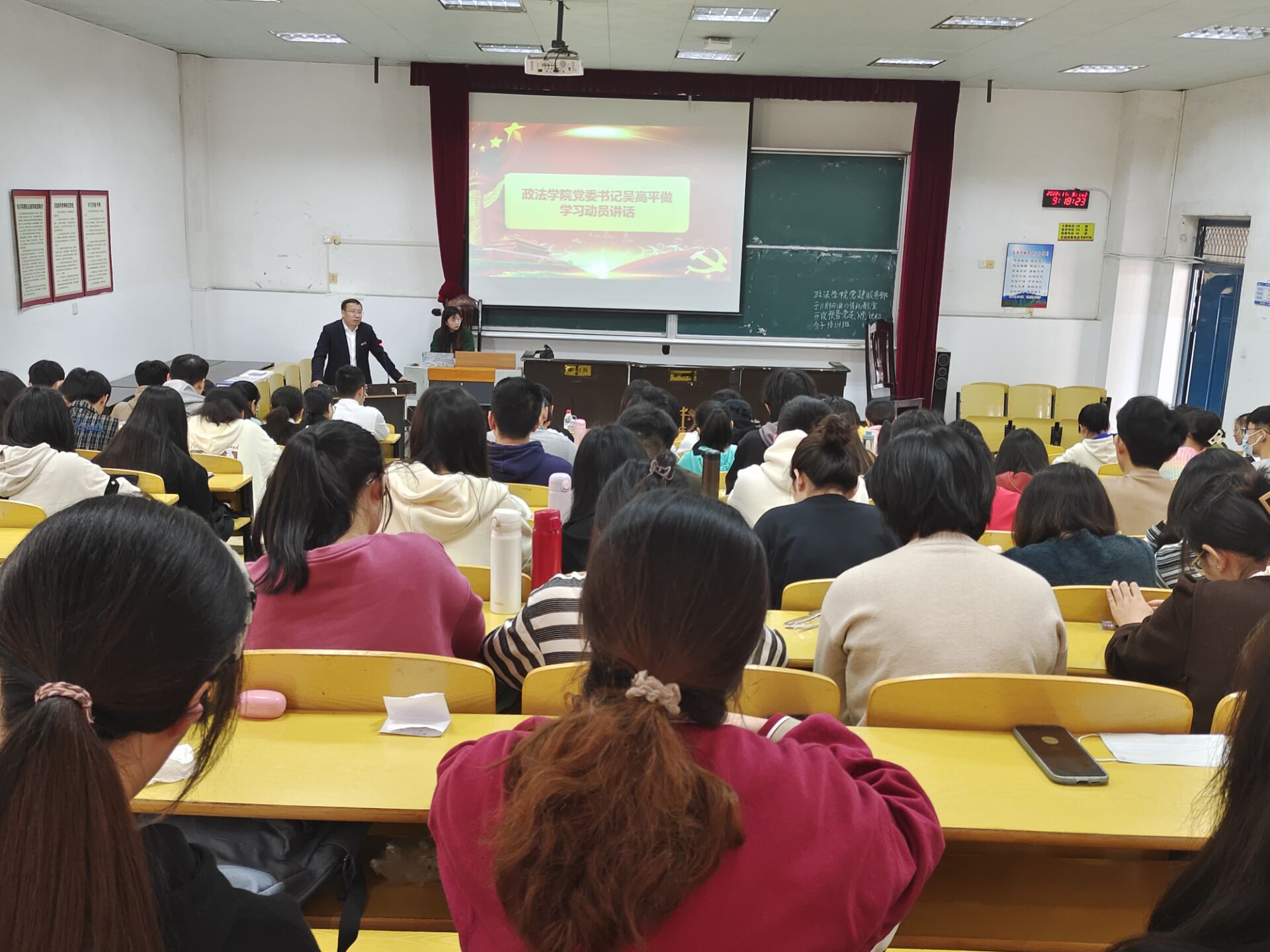 为深入学习宣传贯彻党的二十大精神,筑牢思想阵地,11月8日上午,政法学院举行学习党的二十大精神党员集中教育培训班暨2022年第二期分党校预备党员、入党积极分子培训班开班仪式及首场专题讲座,政法学院党委书记吴高平出席并做动员讲话、政法学院党委副书记喻聪主持、政法学院专职组织员康积勤、全体学员参加。