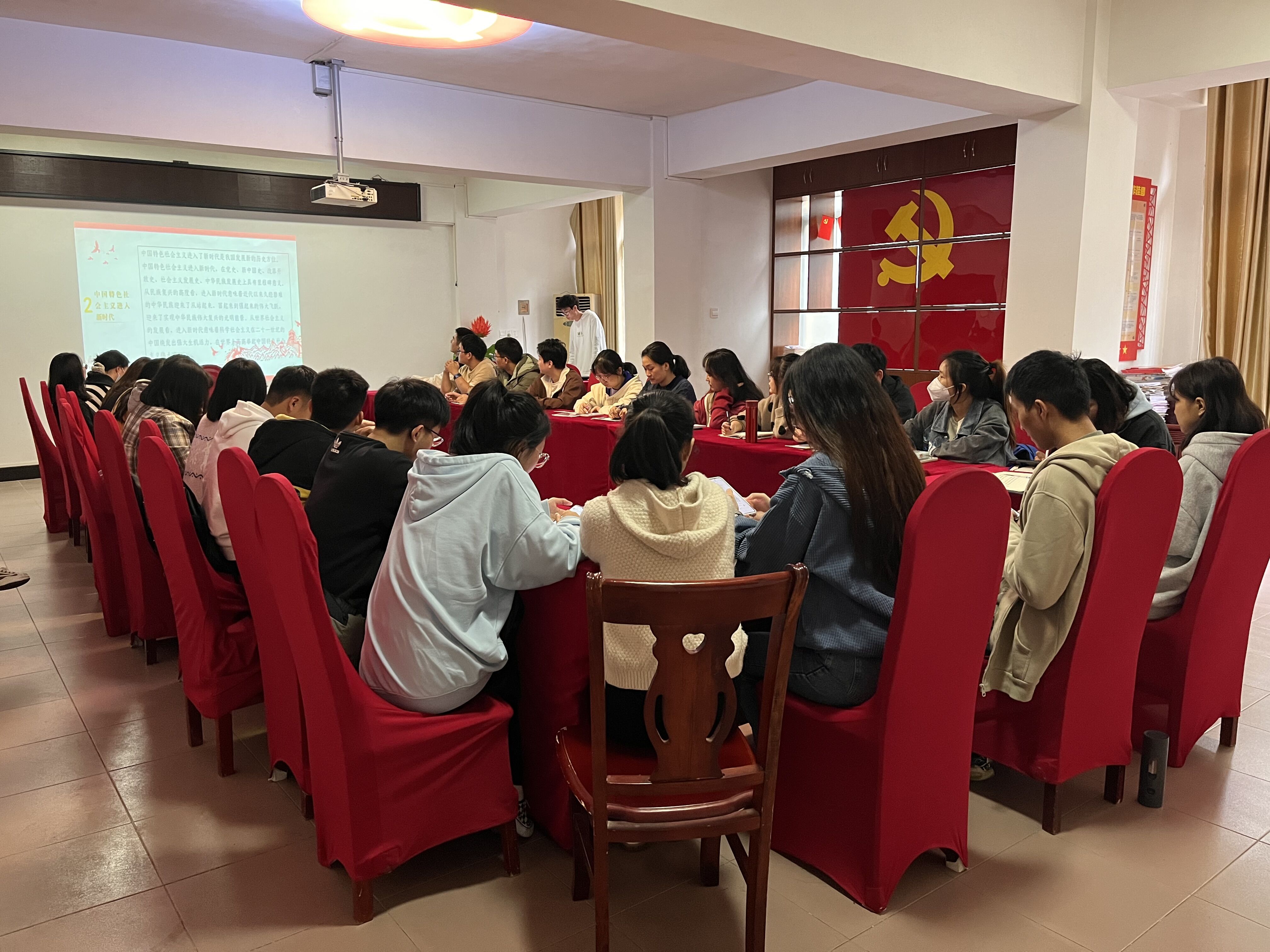 为深入学习党的二十大精神,2022年11月24日13点40分,政法学院学生第一党支部在19栋党员活动室召开“学习贯彻党的二十大精神”主题党日活动。