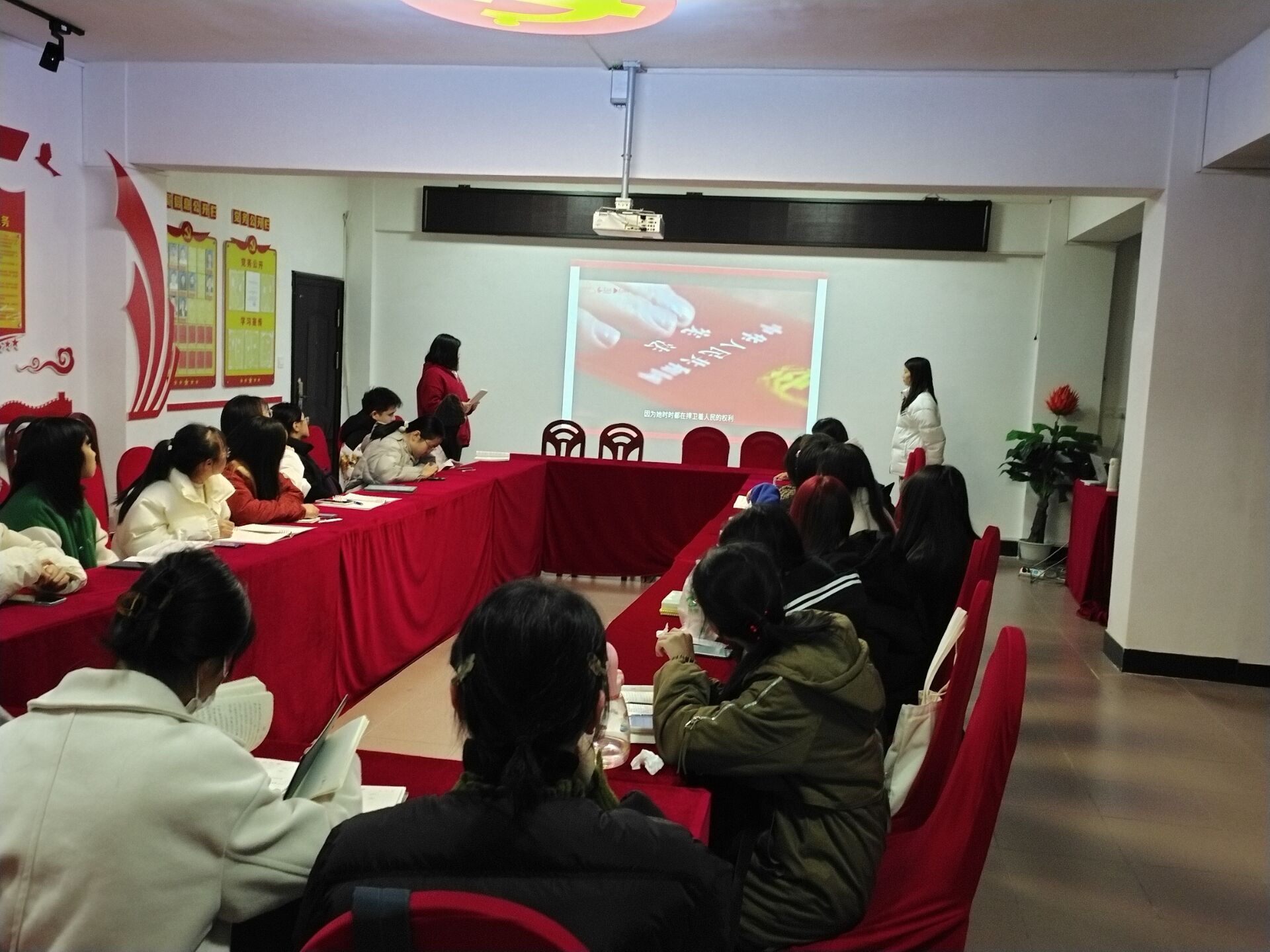 支部在19栋党员活动室开展宪法知识宣讲活动,由学生党员向新一批的入党积极分子讲宪法,带动积极分子深入学宪法。在谈到如何学习宣传宪法时,入党积极分子刘小玥说:“宪法是我国的根本大法,在我国法律体系中居于主导地位,在全面推进依法治国的今天,我们作为入党积极分子,作为法学专业的学生,要做到积极弘扬宪法精神、强化法治意识,努力成为新时代法治中国建设者。”
