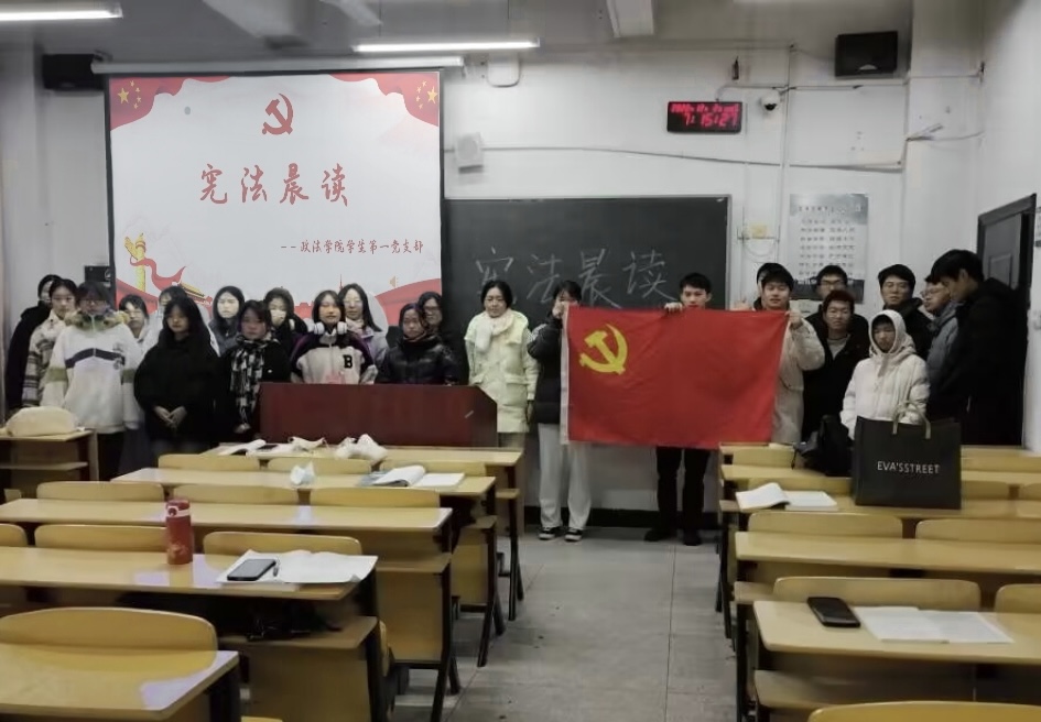 活动当天,支部组织法学学生参与宪法晨读,带领学生深入学习诵读宪法条文。在深入诵读体会中,进一步树立了宪法权威,强化了同学们的法治意识。