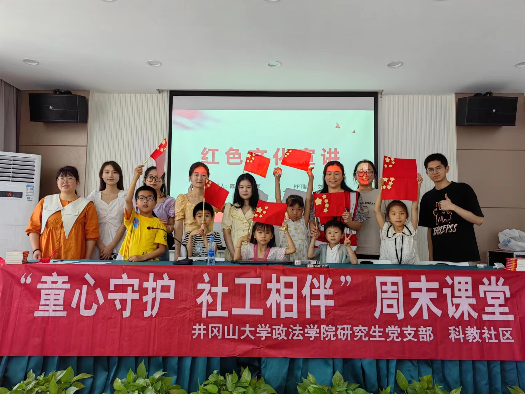 为引导广大少年儿童传承红色基因,赓续红色血脉,从小听党话、跟党走、感党恩,争做德智体美劳全面发展的社会主义建设者和接班人,2023年5月28日上午,科教社区联合井冈山大学政法学院开展“周末课堂之红色文化宣讲”主题活动。