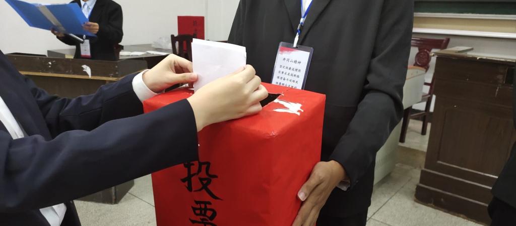 第三阶段召开全体会议,听取审议《井冈山大学政法学院学生会第一届学生委员会工作报告》及《井冈山大学政法学院学生代表大会提案工作报告》,表决通过了《井冈山大学政法学院第二次学生代表大会选举办法》及大会总监票人、监票人、计票人名单,并审议通过了井冈山大学政法学院第二次学生委员会委员候选人名单。经代表们有序投票选举后,于潇雅、李涛、范想、潘孟原、周帅、王朝、何宇烨等7位同志当选为井冈山大学政法学院第二届学生委员,于潇雅、张凌轩、李涛、范想、王楠、胡静、陈文晶、杨继茹、谢水华、张浩践等10位同志当选为井冈山大学第八次学生代表大会政法学院学生代表。随后第四阶段举行闭幕式,主持人于潇雅致闭幕词后,大会在整齐嘹亮的共青团团歌中胜利闭幕!