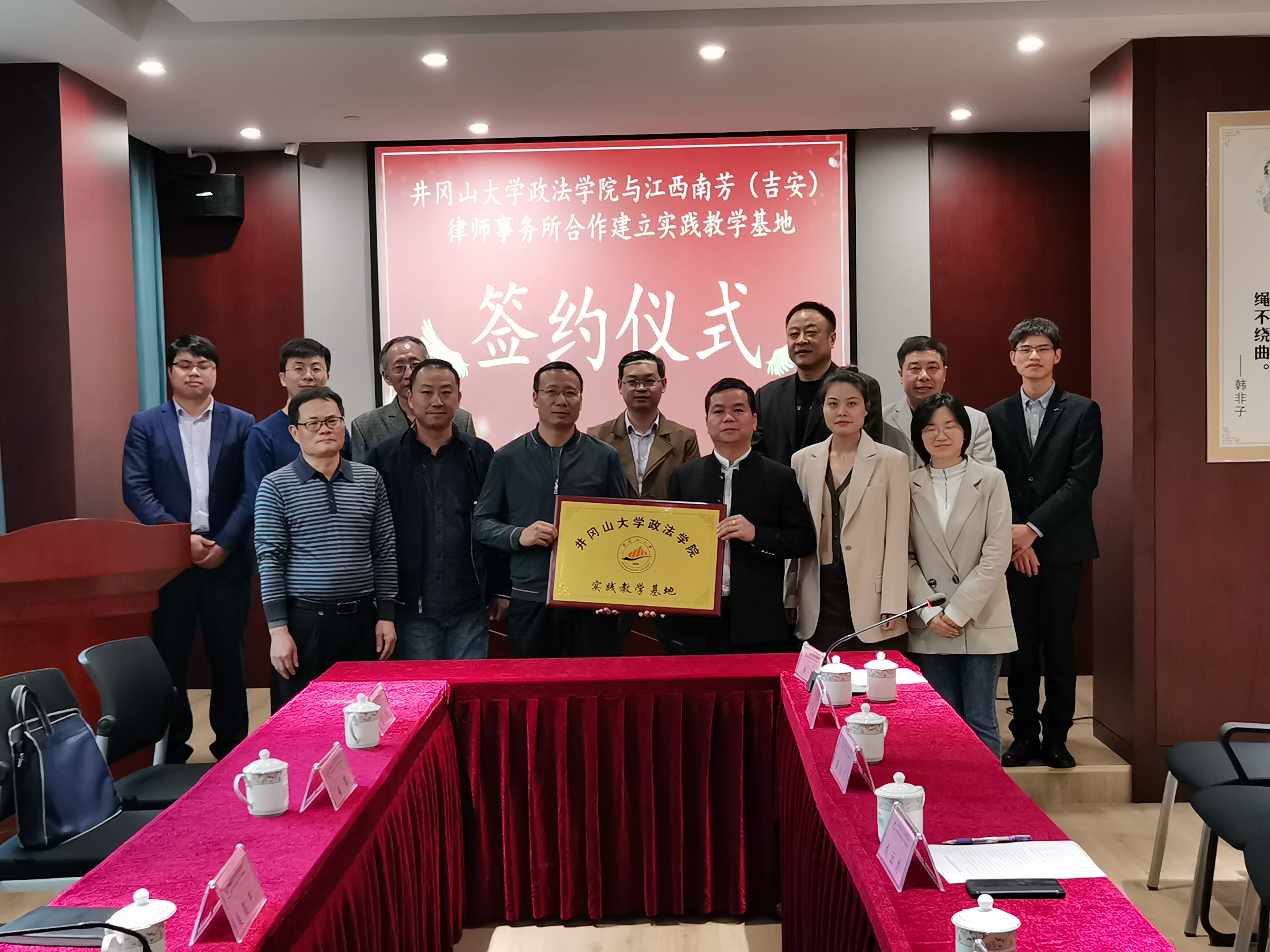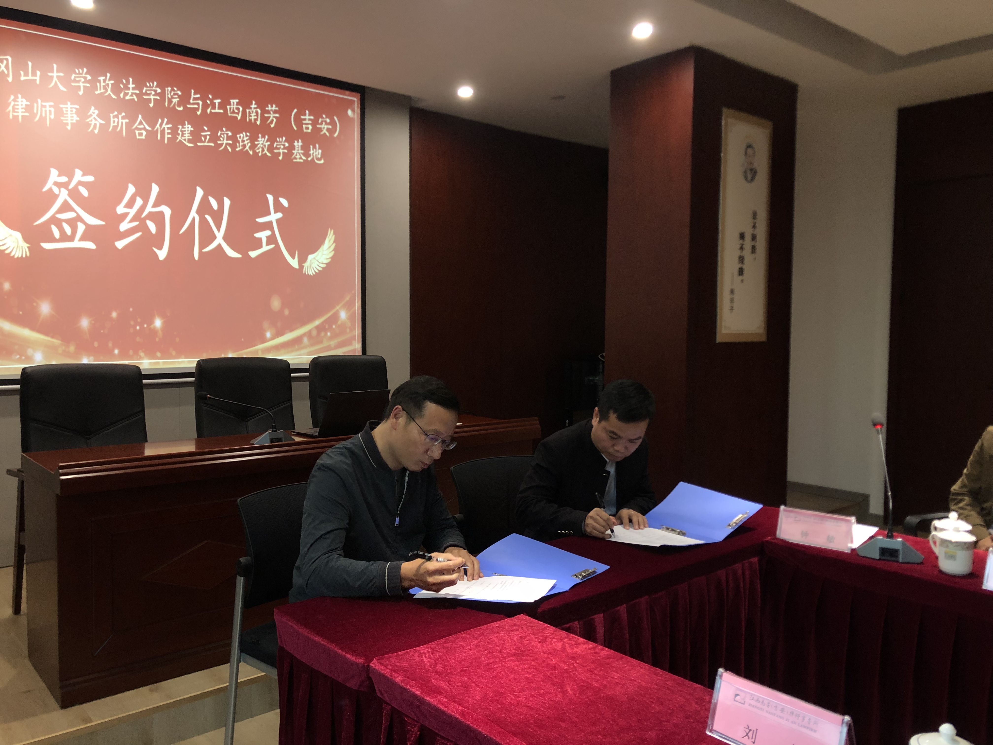 2021年11月5日,南芳(吉安)律所与井冈山大学政法学院共建实践教学基地签约仪式隆重举行。井冈山大学政法学院党委书记吴高平、党委副书记喻聪、副院长欧阳晓安等领导参加南芳(吉安)律所参与签约。