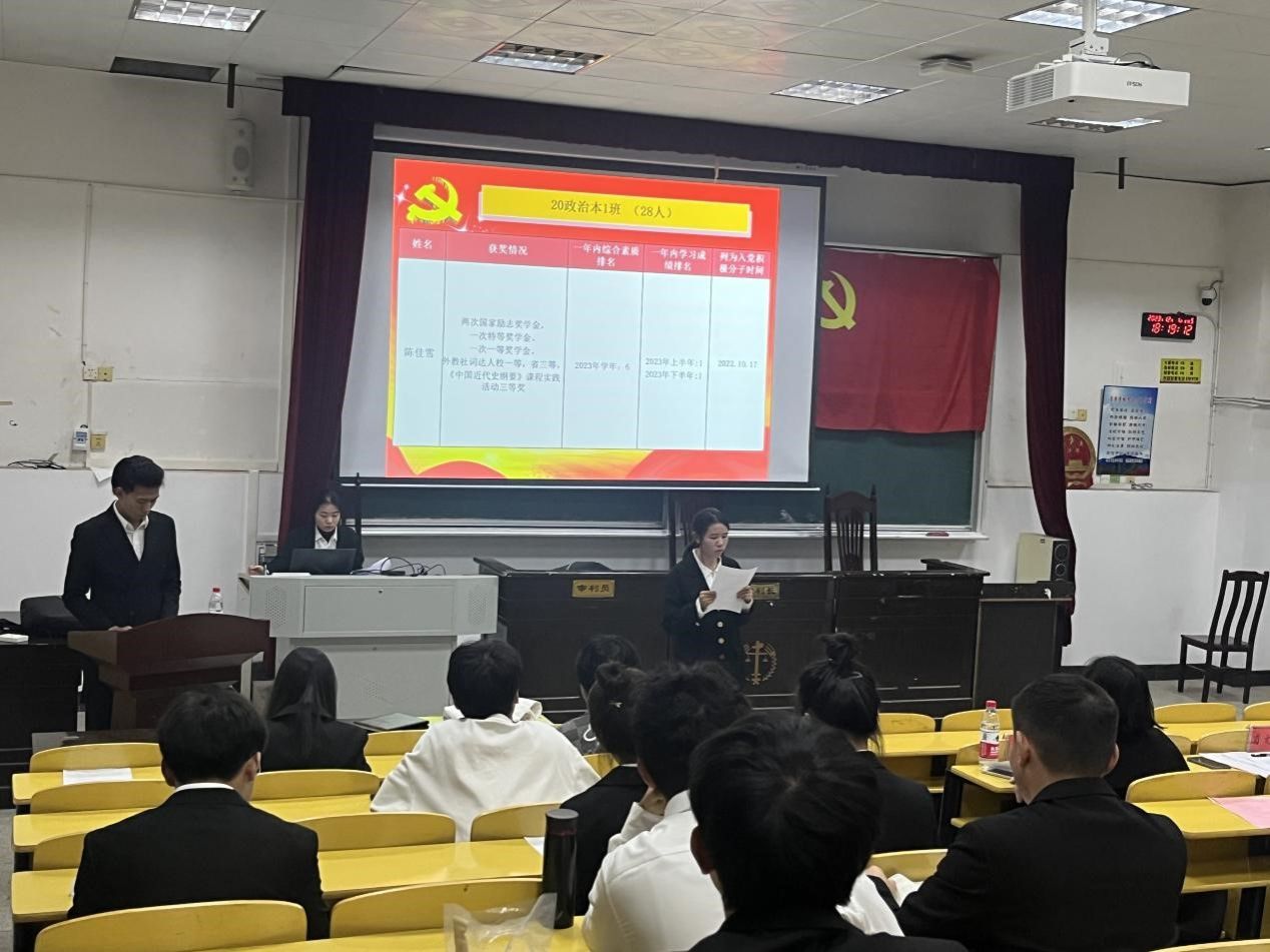 2023年12月7日下午2时,政法学院学生第二党支部接收预备党员支部大会在5栋408教室顺利召开,政法学院学生第二党支部书记肖文海,支部组织委员葛以璇、宣传委员杨洪芹出席出席,支部党员,预备党员到场参与本次大会。