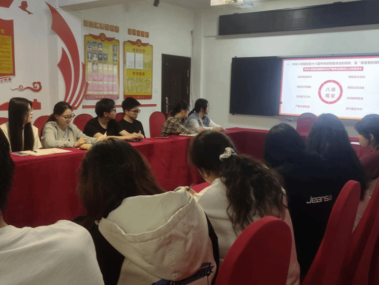 为深入贯彻中央八项规定精神,抓实推进作风建设,6月17日下午,政法学院学生第二党支部于19栋党员活动室组织开展深入贯彻中央八项规定精神学习教育专题党课活动,支部书记肖文海主讲,支部其他党员,部分入党积极分子出席。