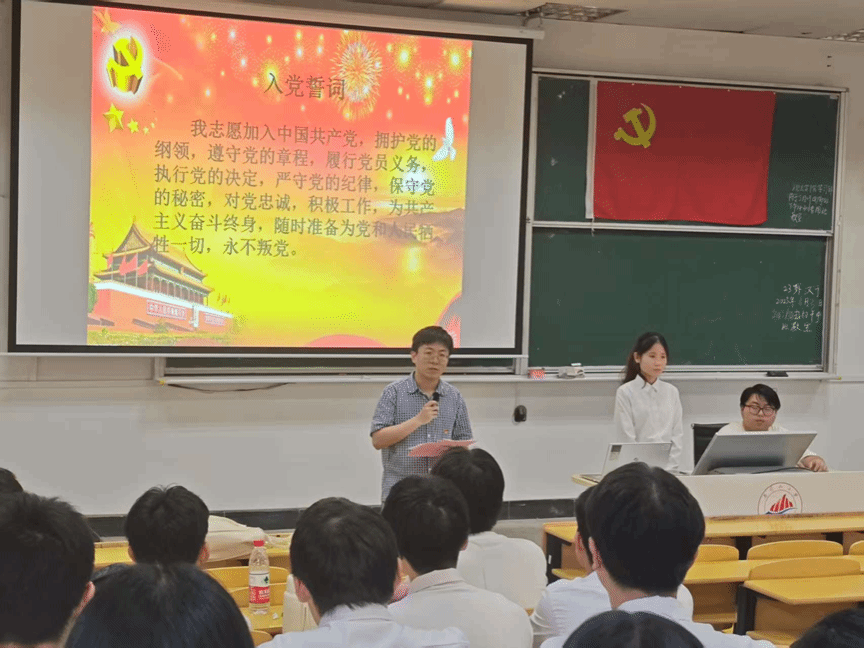 最后,肖文海向新发展党员表示祝贺,并提出具体要求:一要时刻牢记入党初心,坚决拥护党的纲领;二要刻苦钻研,苦练专业本领,努力成为栋梁之才;三要广泛涉猎,持续提升综合素养。